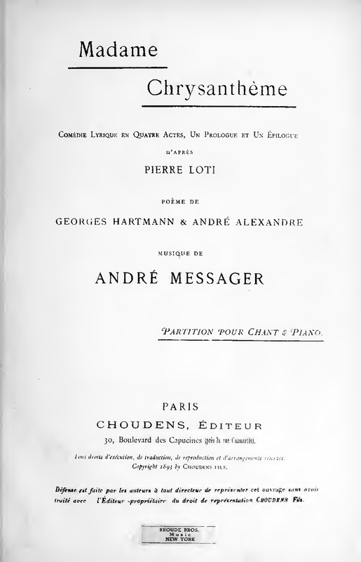 | Librettist | Georges Hartmann (1843–1900) André Alexandre (1860–1928) |