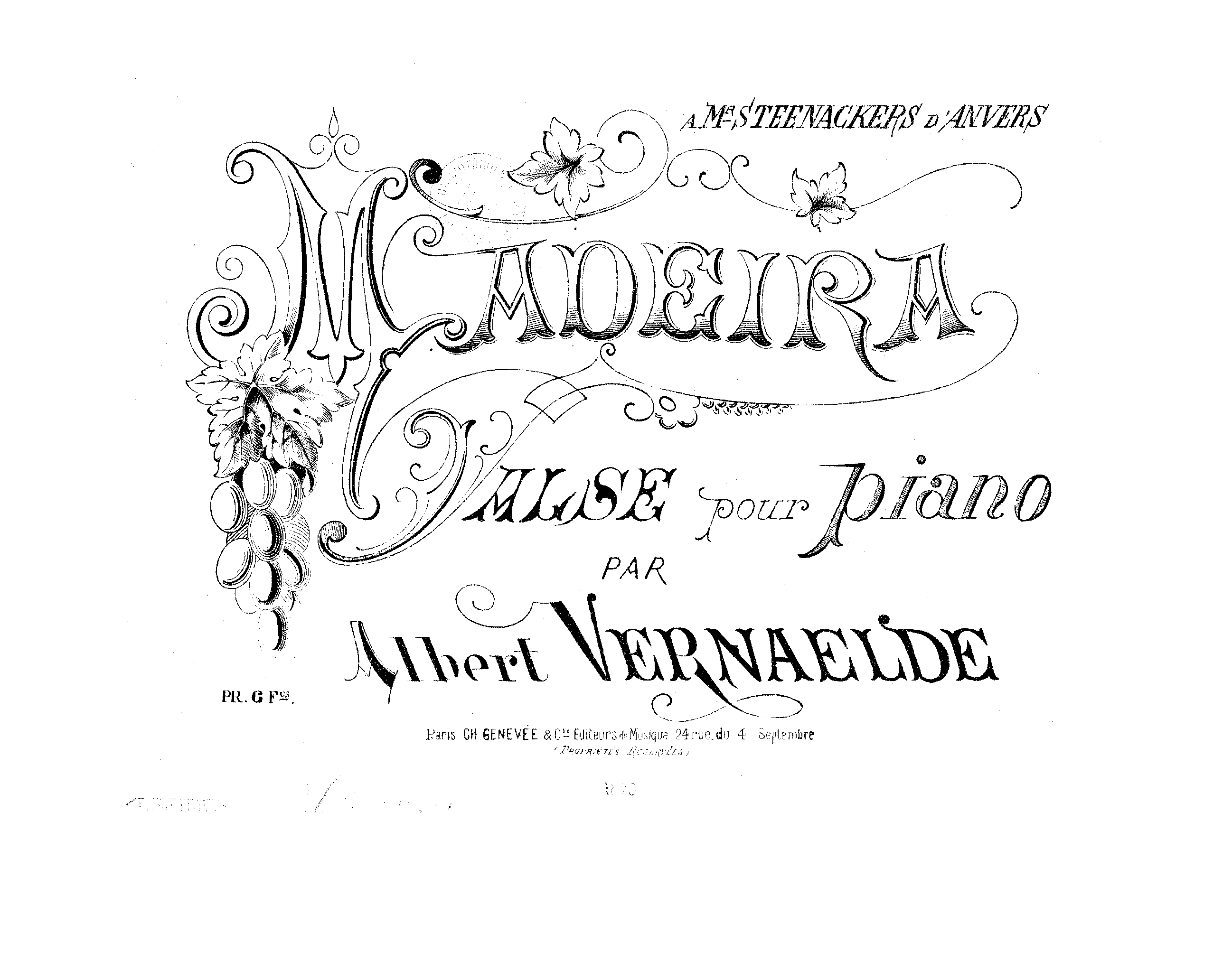 | Dedication | à Mr. Steenackers d'Anvers |