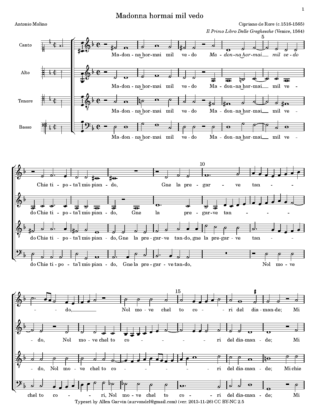 | First Publication | 1564 in Il primo libro delle gregesche di Manoli Blessi (no.1) |