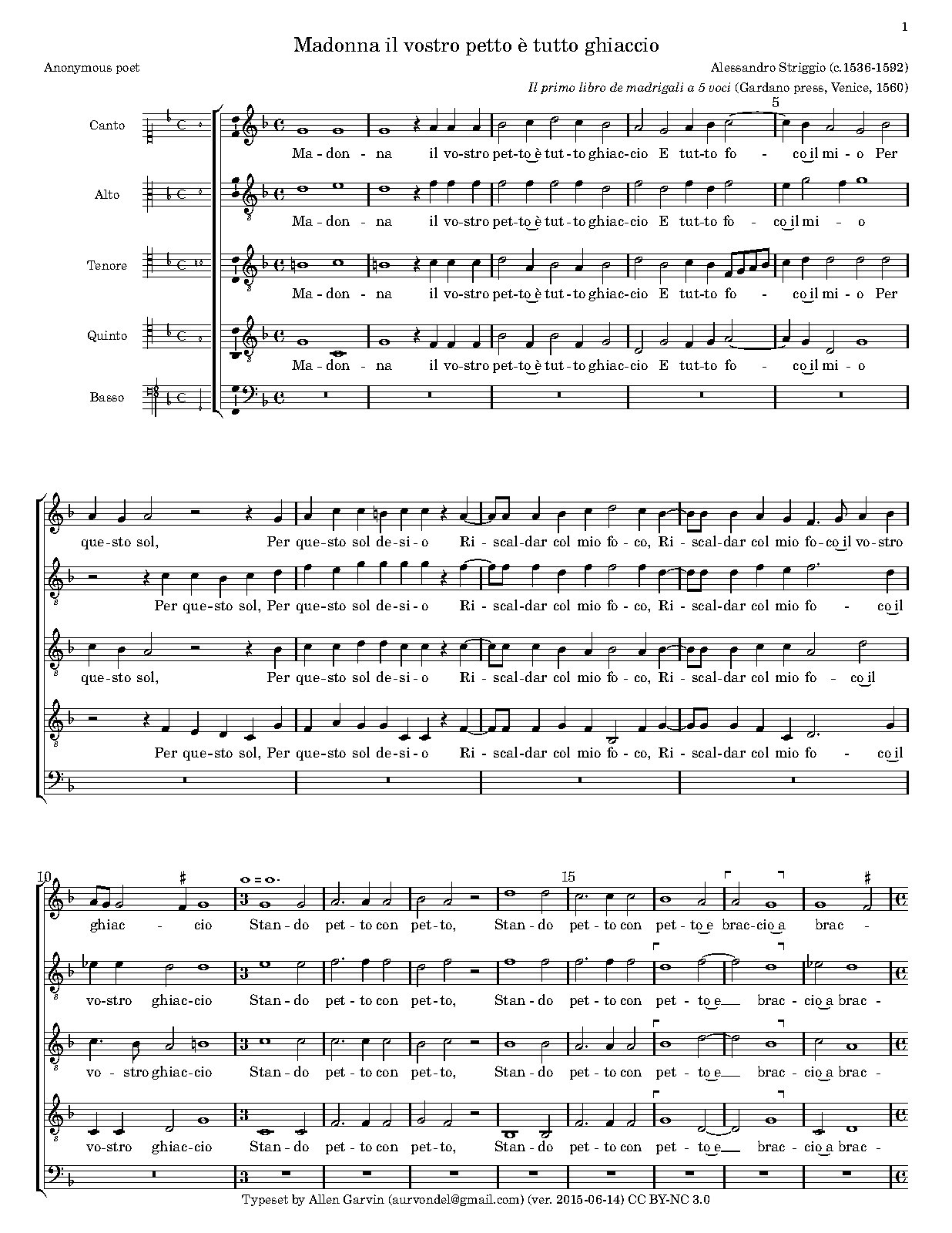 | First Publication | 1560 in Madrigali a 5 voci, Libro 1 (No.24) |