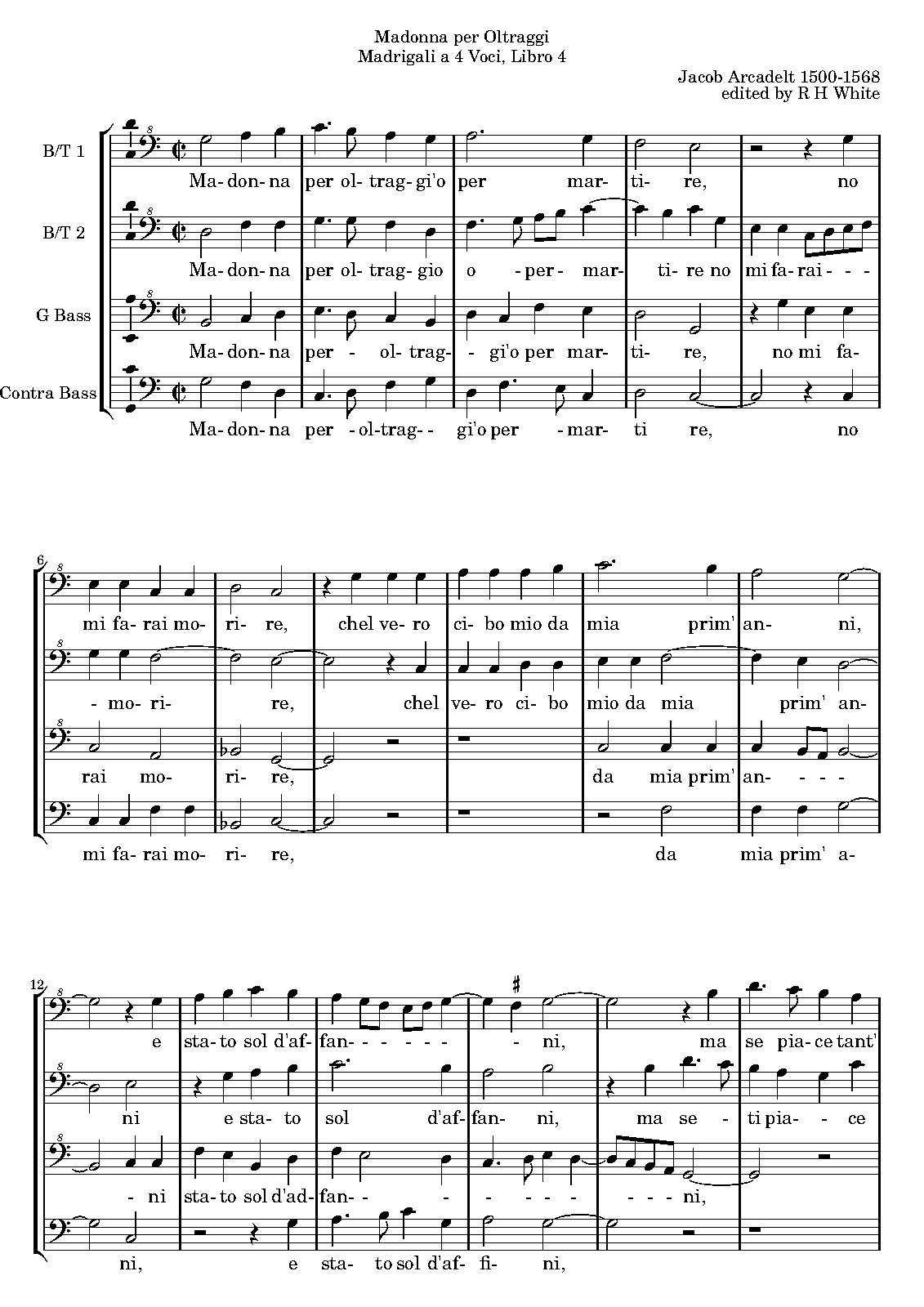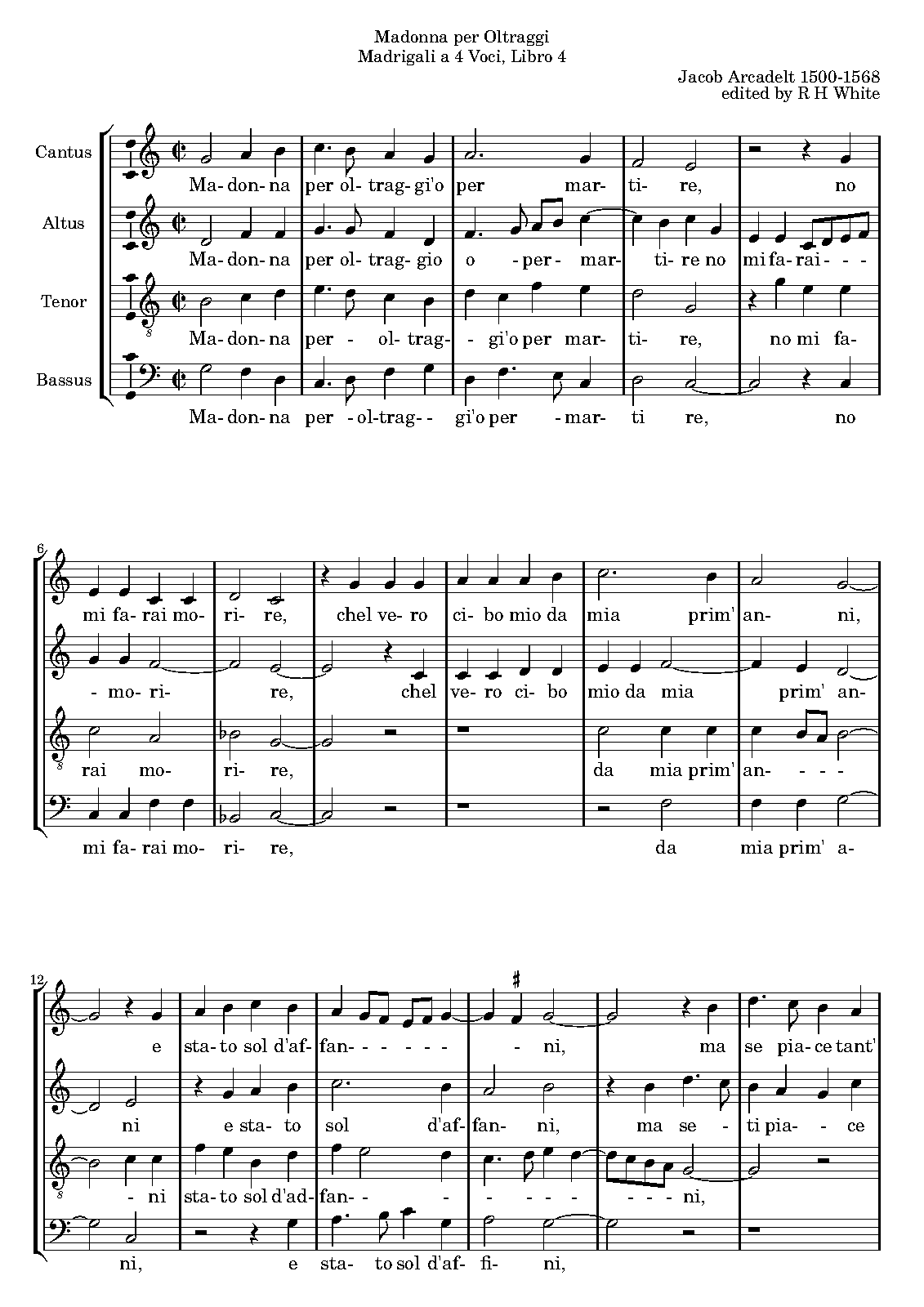 From the collection "Il quarto libro di madrigali d’Archadelt, a quatro voci" published by Antonio Gardane (Gardano), Venice (1539)