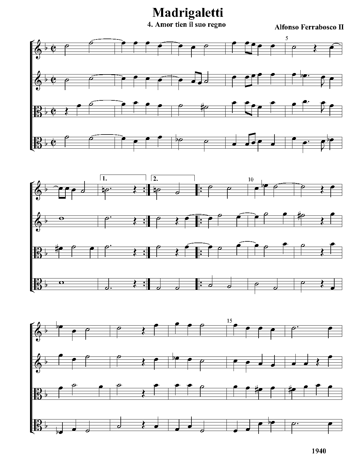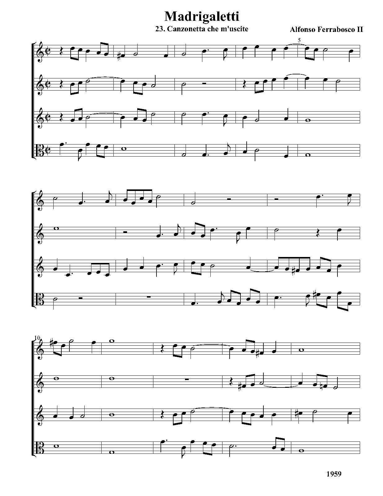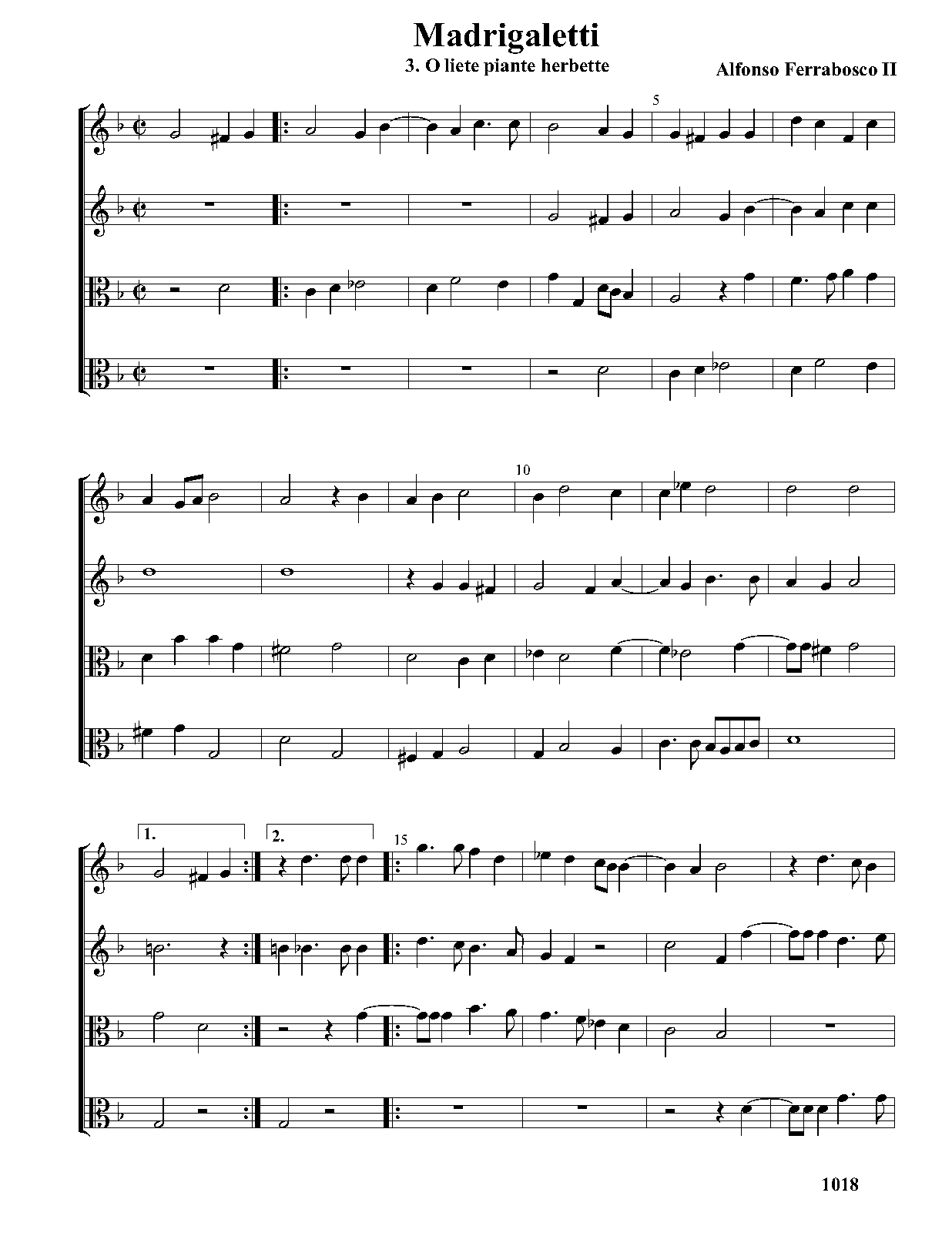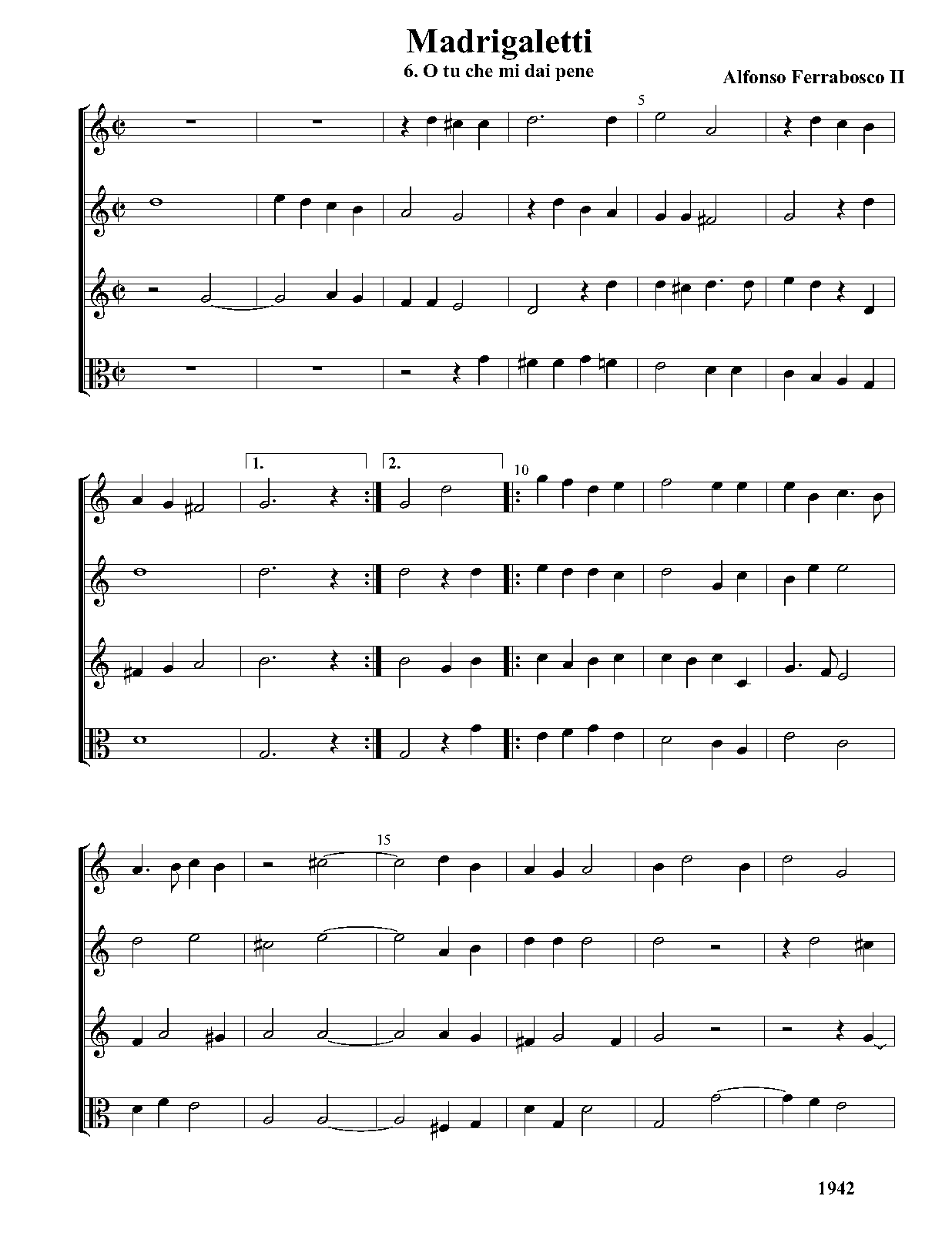 | Genre Categories | Madrigals; For 4 voices; For unaccompanied voices; Scores featuring the voice; Italian language; For 4 viols (arr); Scores featuring the viol (arr); For 4 players (arr) |