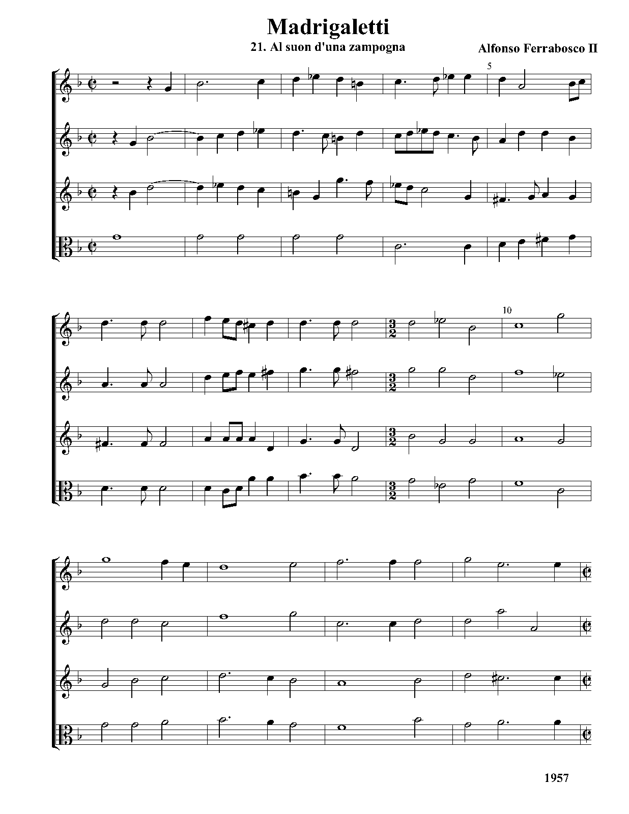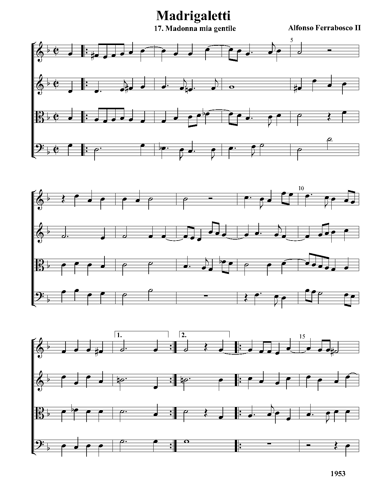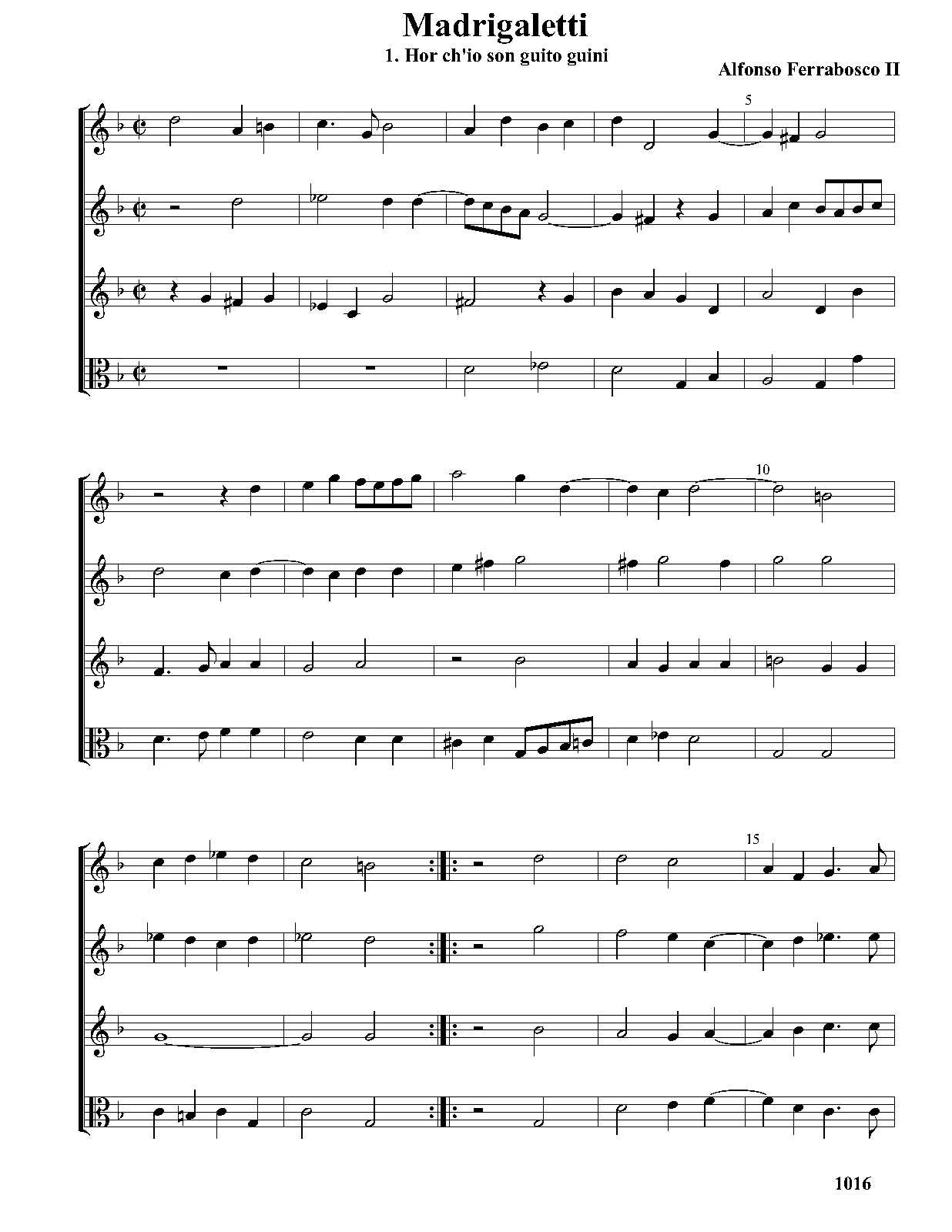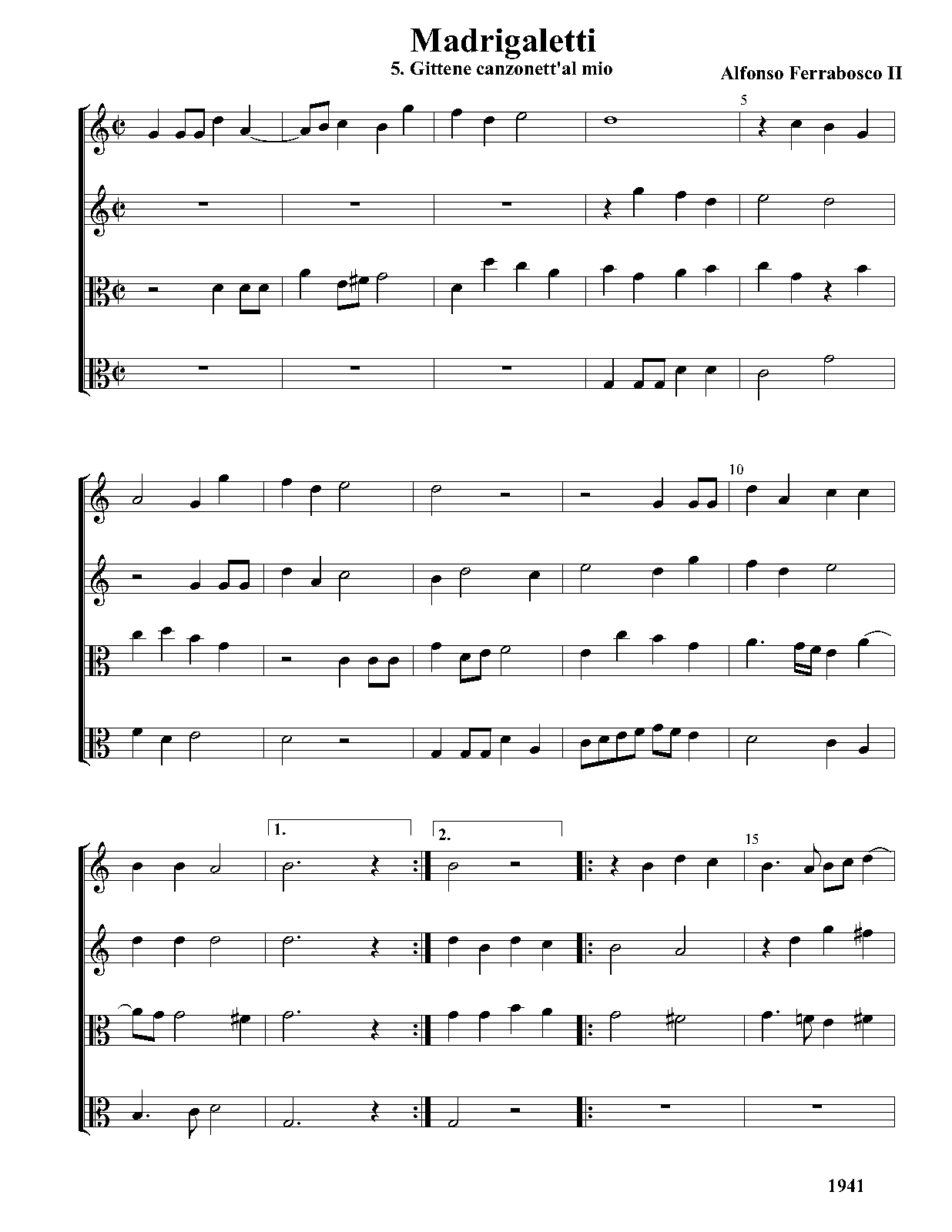 | Genre Categories | Madrigals; For 4 voices; For unaccompanied voices; Scores featuring the voice; Italian language; For 4 viols (arr); Scores featuring the viol (arr); For 4 players (arr) |