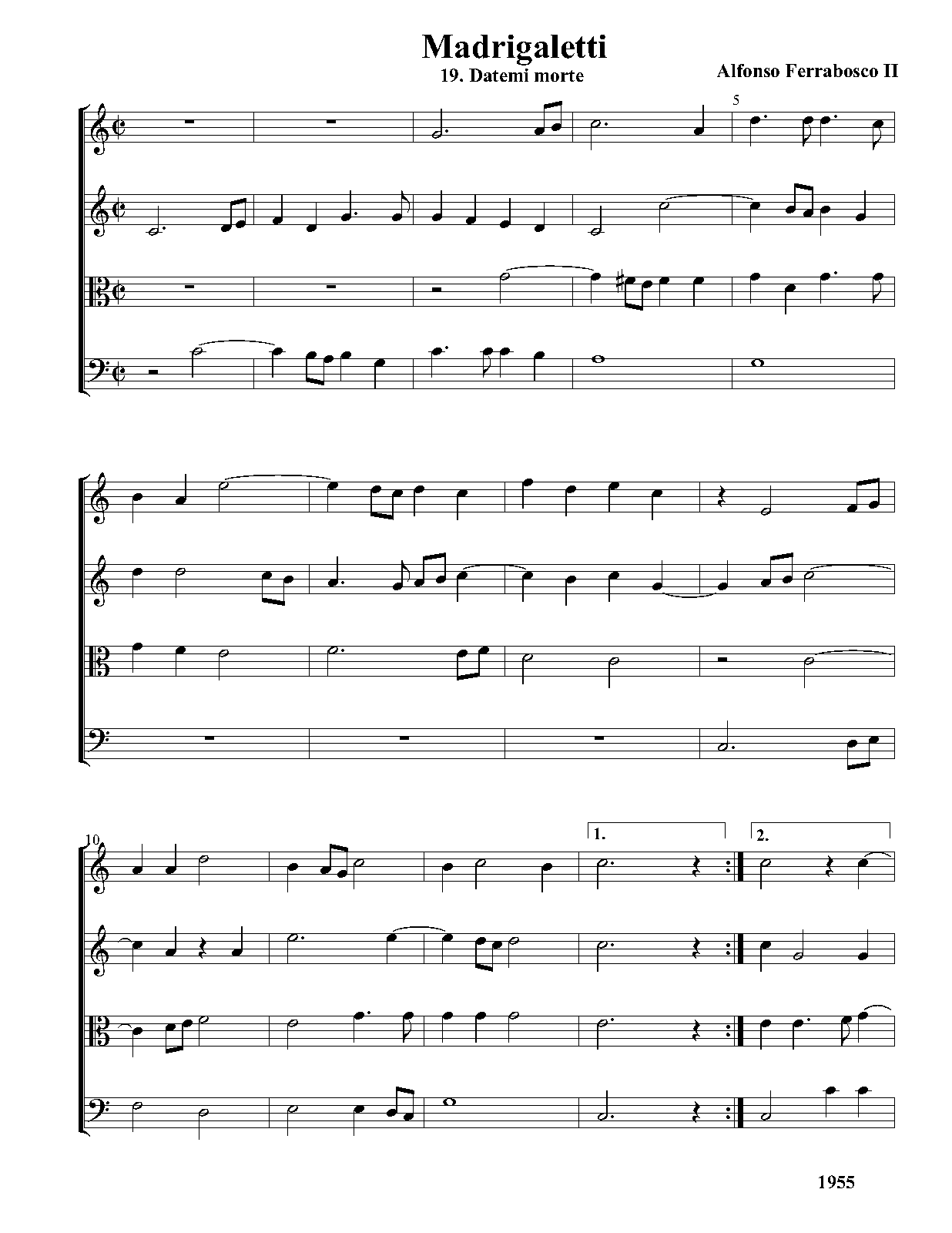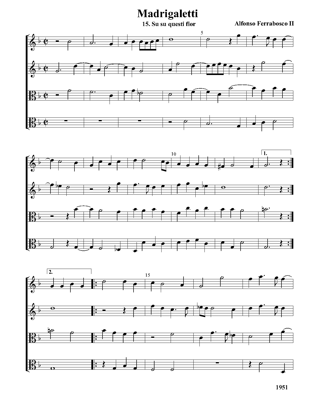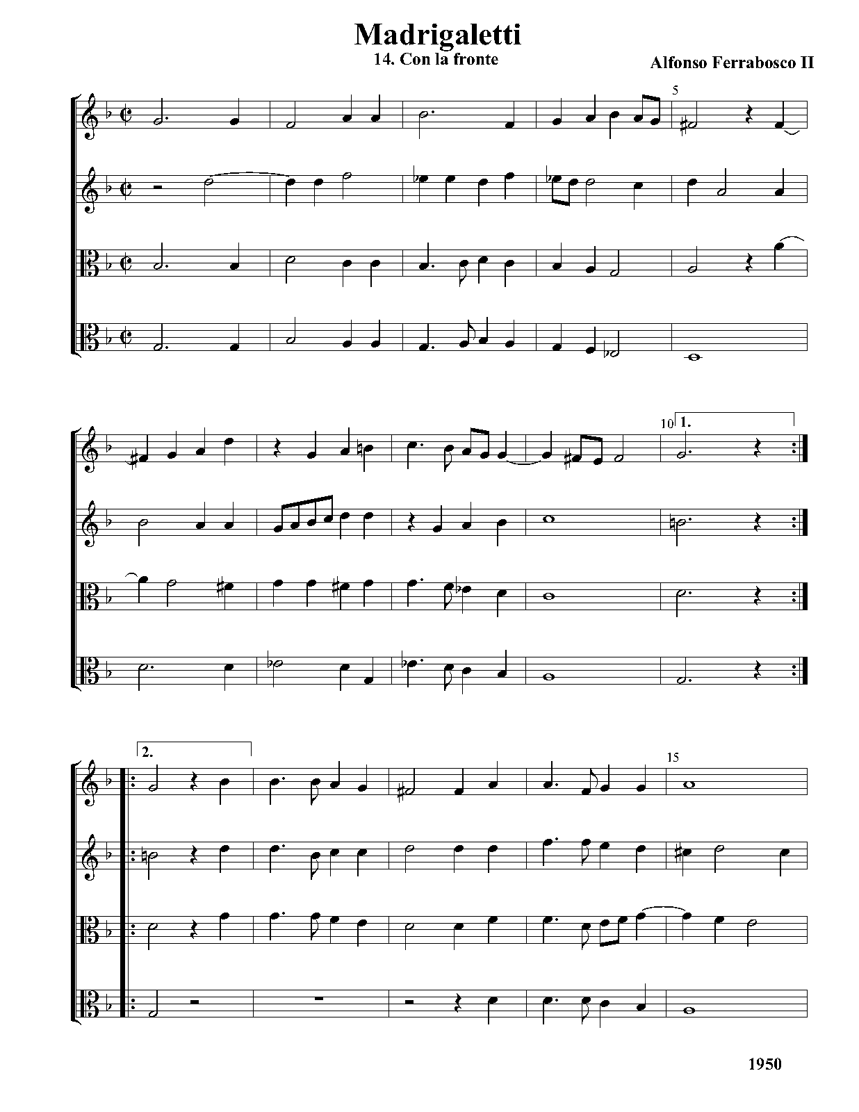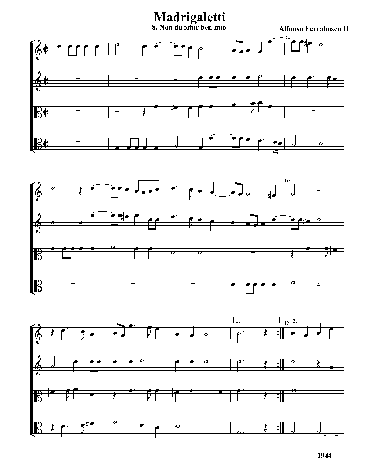 | Genre Categories | Madrigals; For 4 voices; For unaccompanied voices; Scores featuring the voice; Italian language; For 4 viols (arr); Scores featuring the viol (arr); For 4 players (arr) |