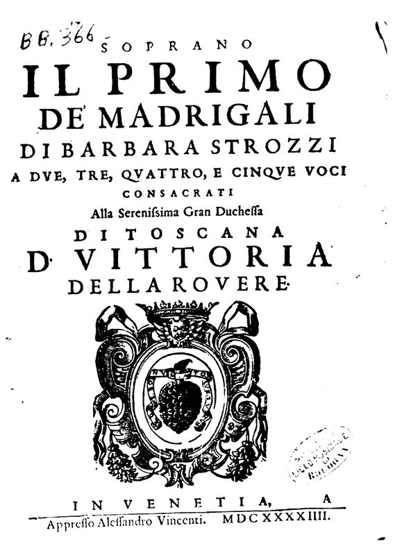 | Alternative. Title | Il primo [libro] di madrigali di Barbara Strozzi a due, tre, quattro, e cinque voci Consacrati alla Serenissima Gran Duchessa di Toscana D. Vittoria della Rovere. |