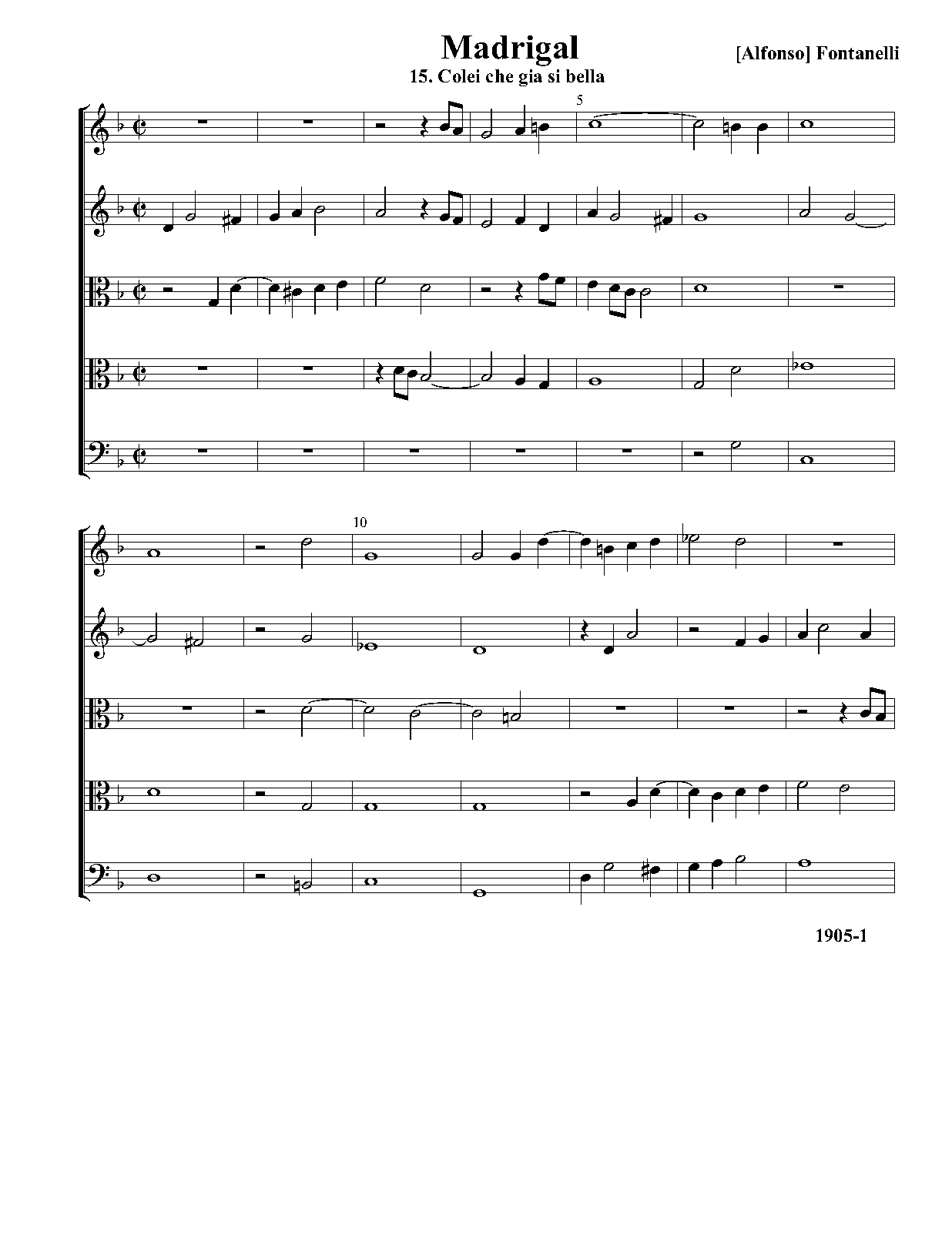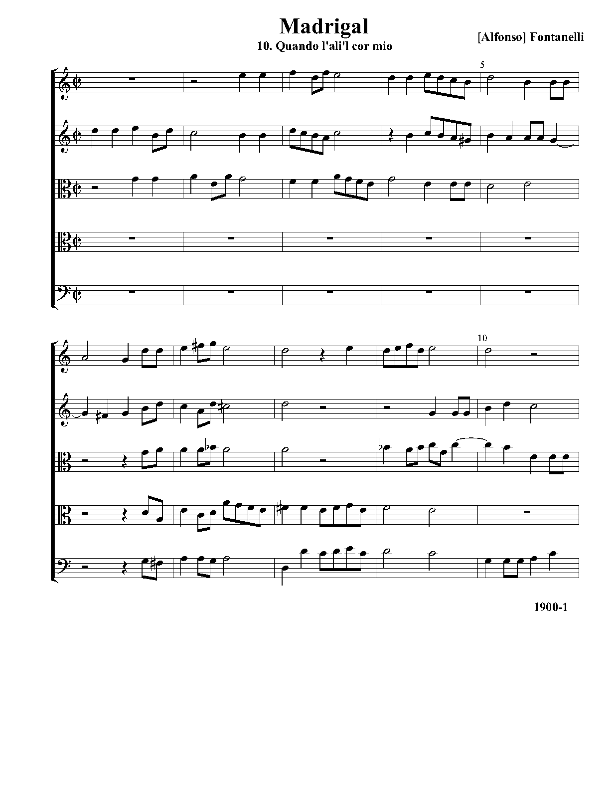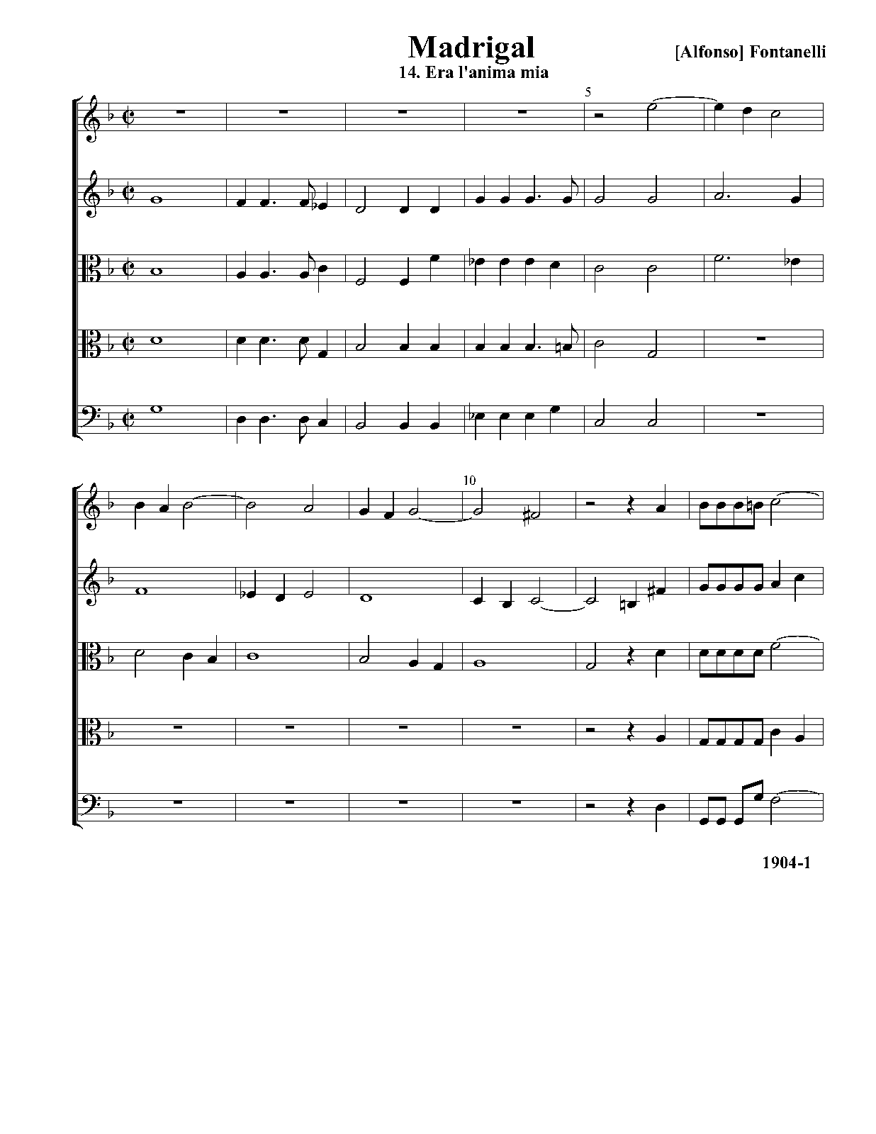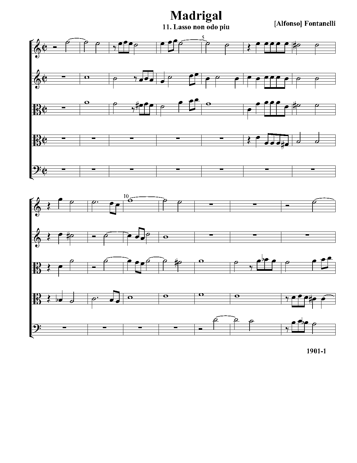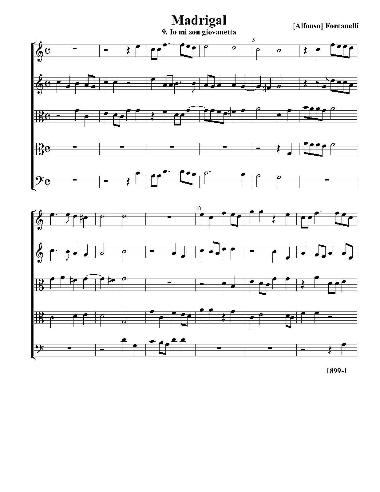| Genre Categories | Madrigals; For 5 voices; For unaccompanied voices; Scores featuring the voice; Italian language; For 5 viols (arr); Scores featuring the viol (arr); For 5 players (arr) |