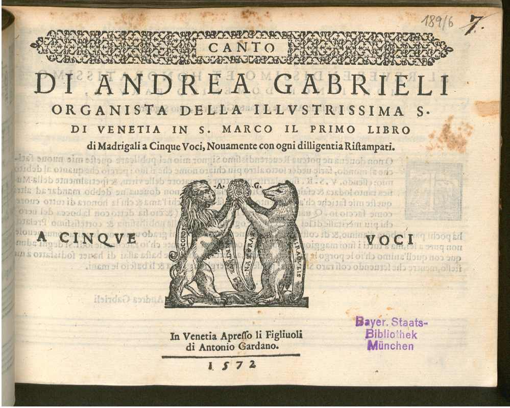 | Genre Categories | Madrigals; Canzonas; For 5 voices; |