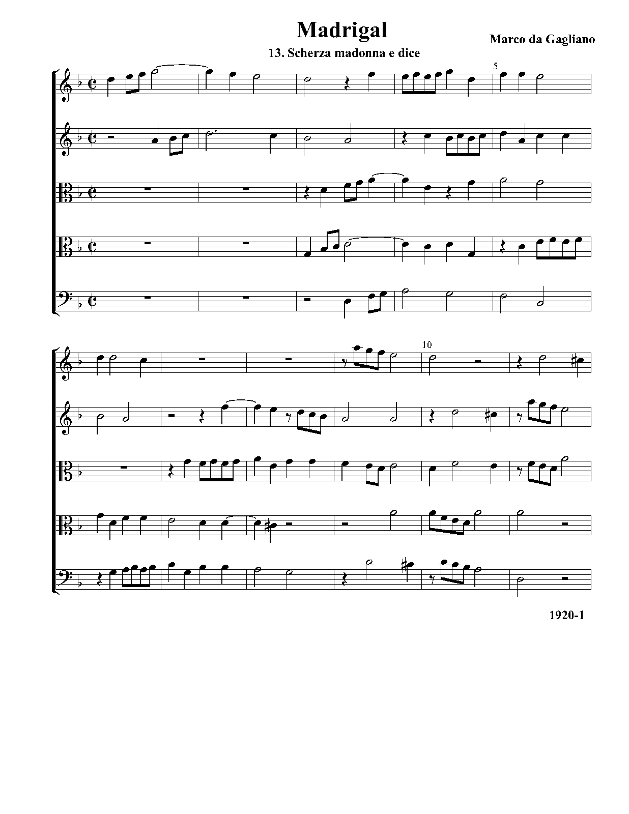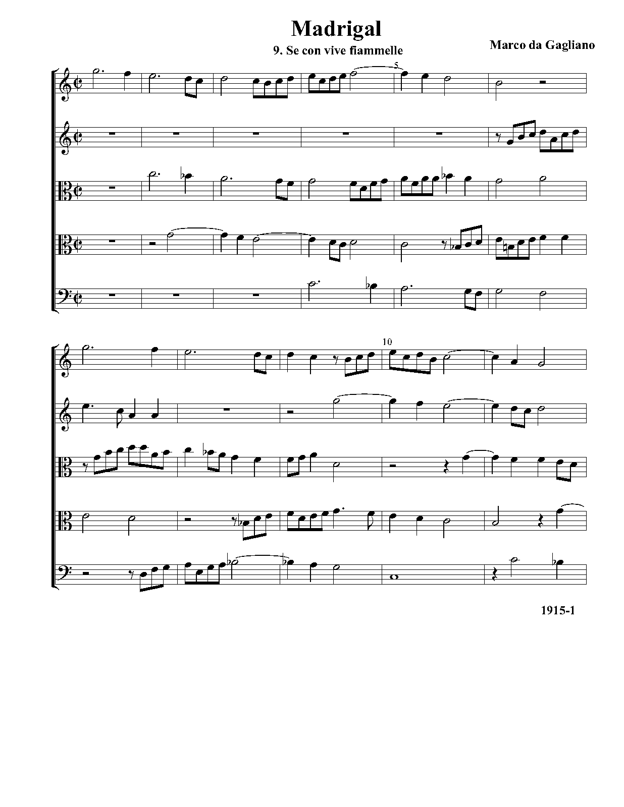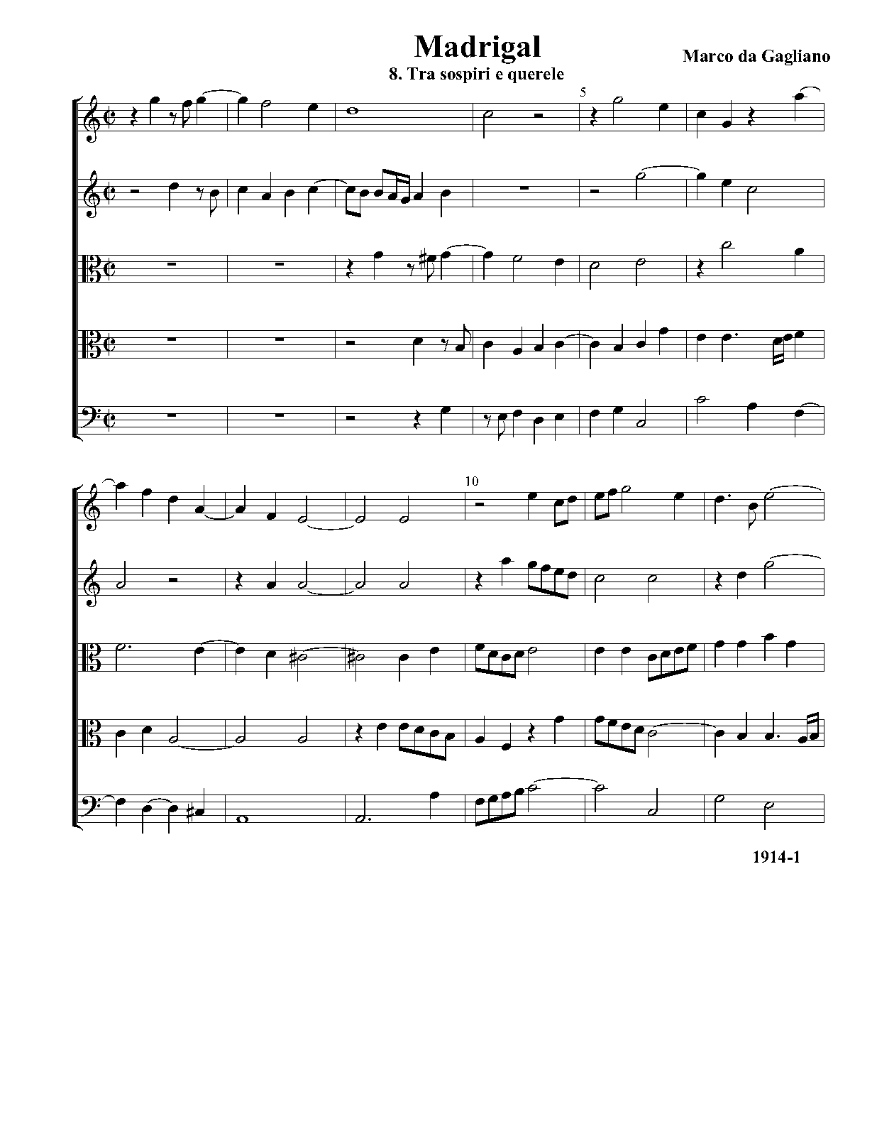 | Genre Categories | Madrigals; For 5 voices; For unaccompanied voices; Scores featuring the voice; Italian language; For 5 viols (arr); Scores featuring the viol (arr); For 5 players (arr) |