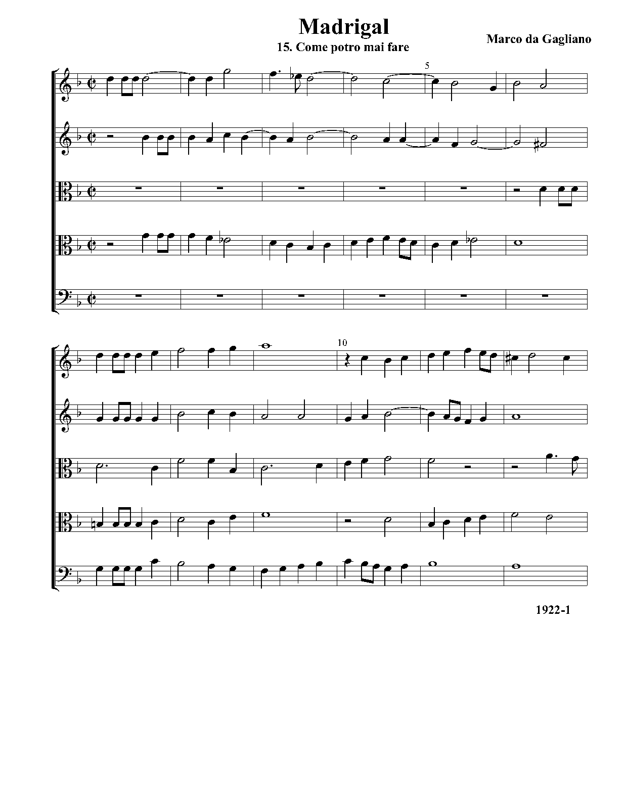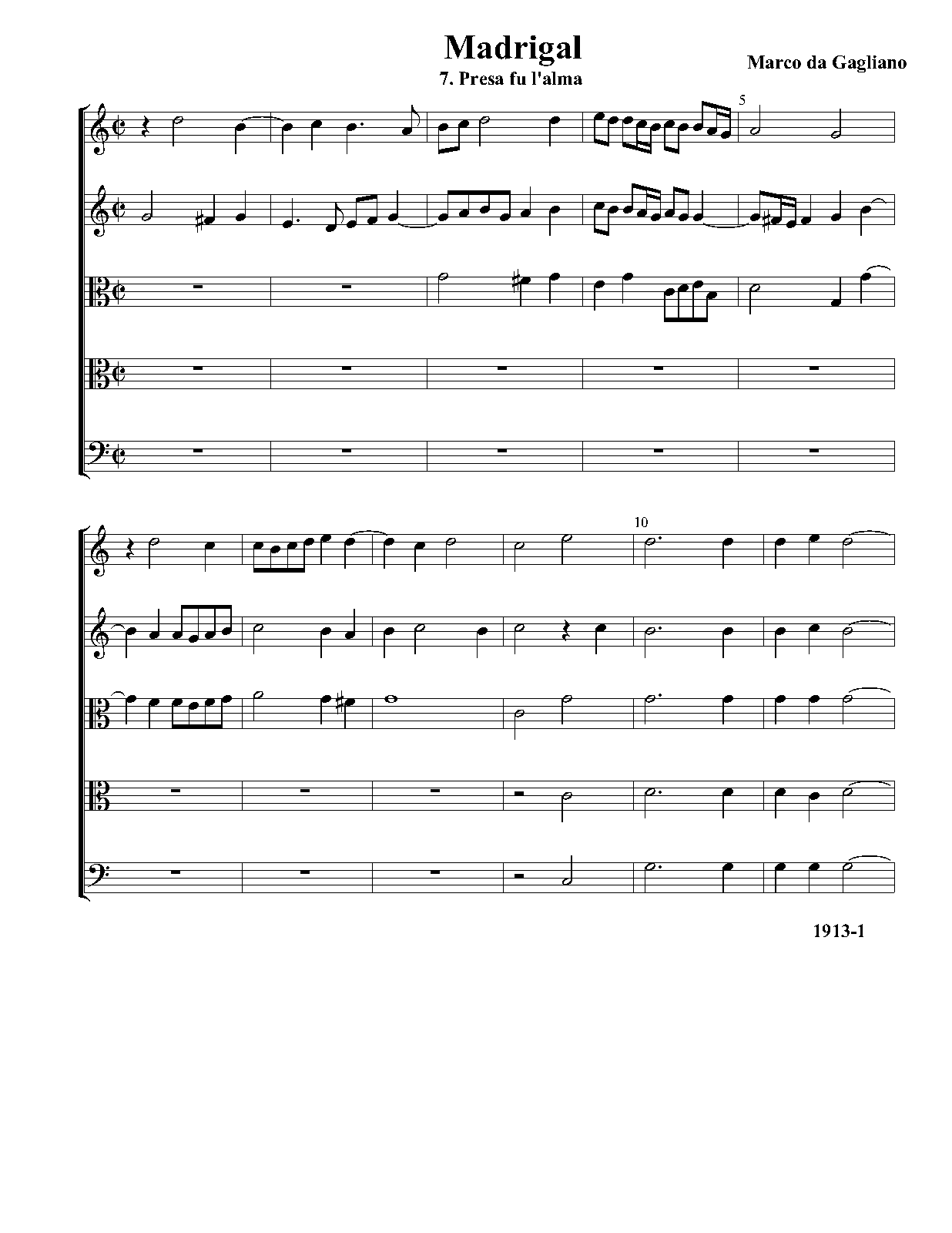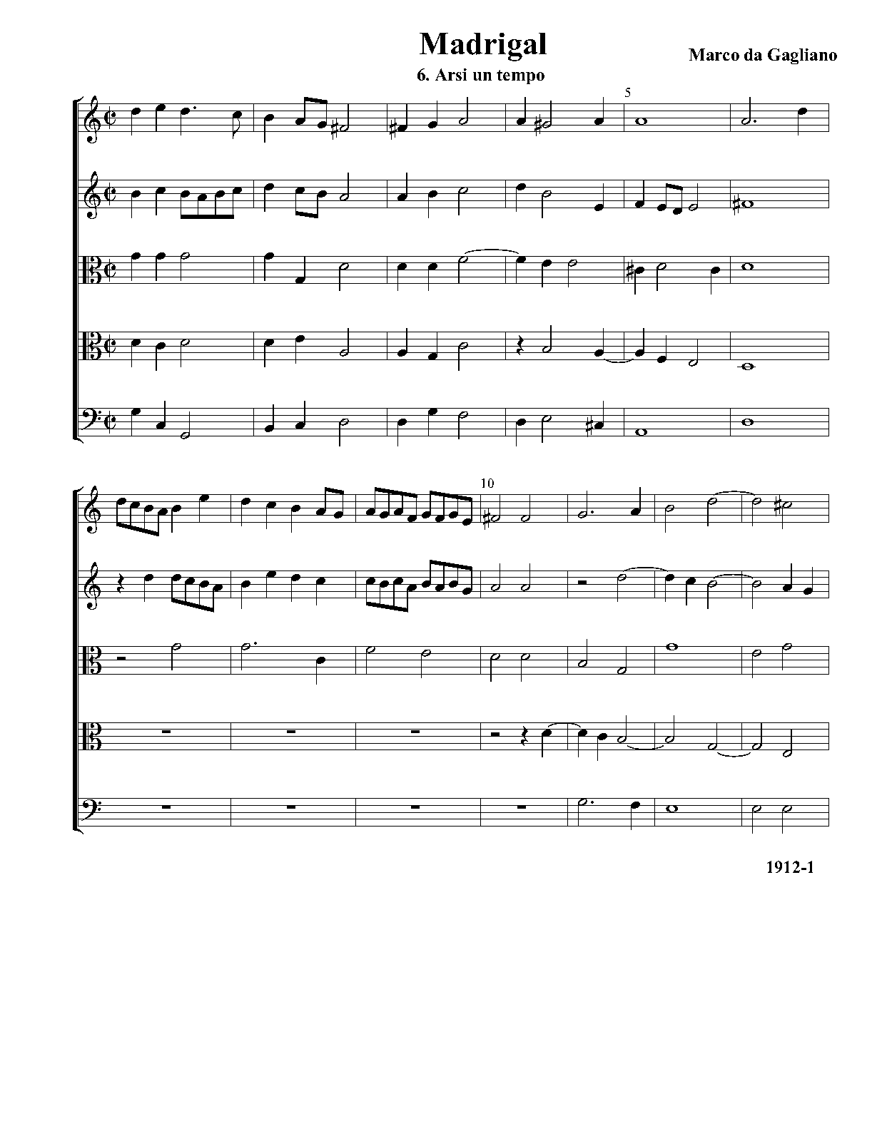 | Genre Categories | Madrigals; For 5 voices; For unaccompanied voices; Scores featuring the voice; Italian language; For 5 viols (arr); Scores featuring the viol (arr); For 5 players (arr) |