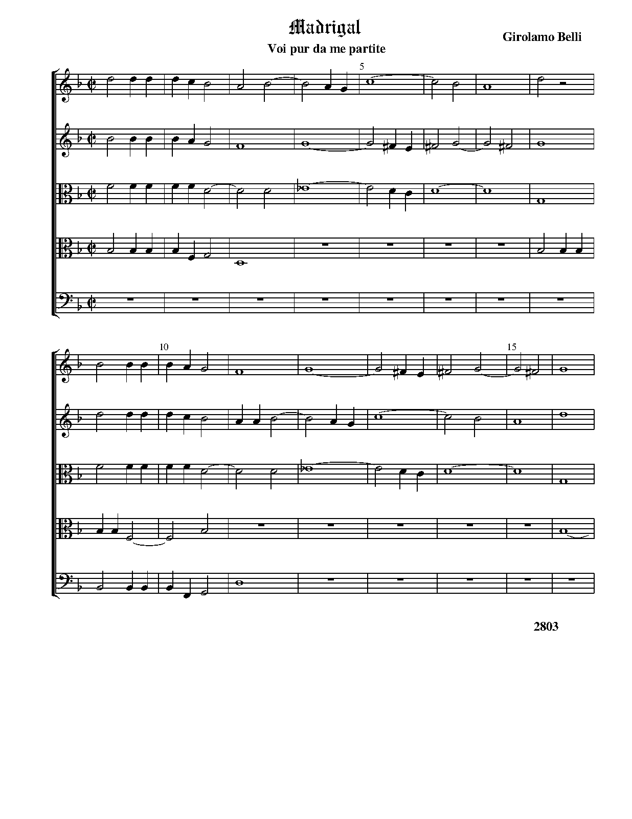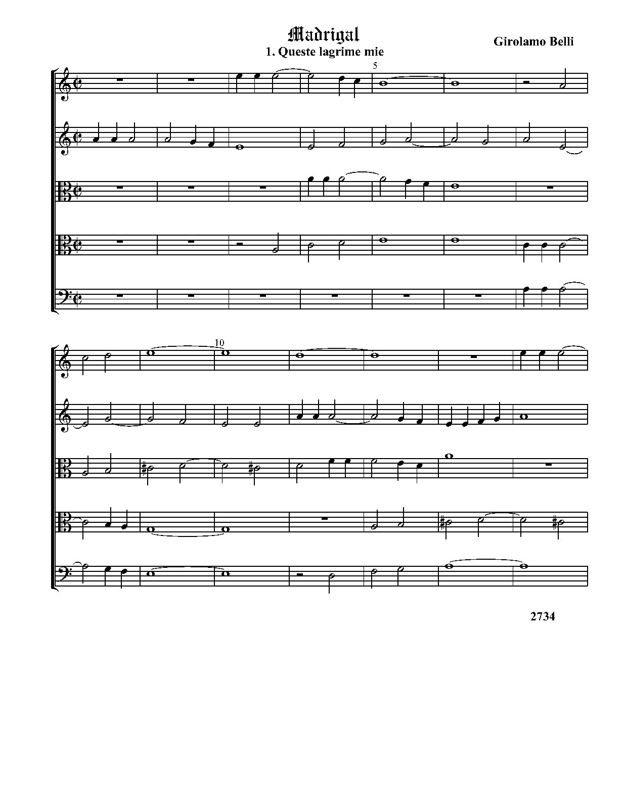 | Genre Categories | Madrigals; For 5 voices; For unaccompanied voices; Scores featuring the voice; Italian language; For 5 viols (arr); Scores featuring the viol (arr); For 5 players (arr) |