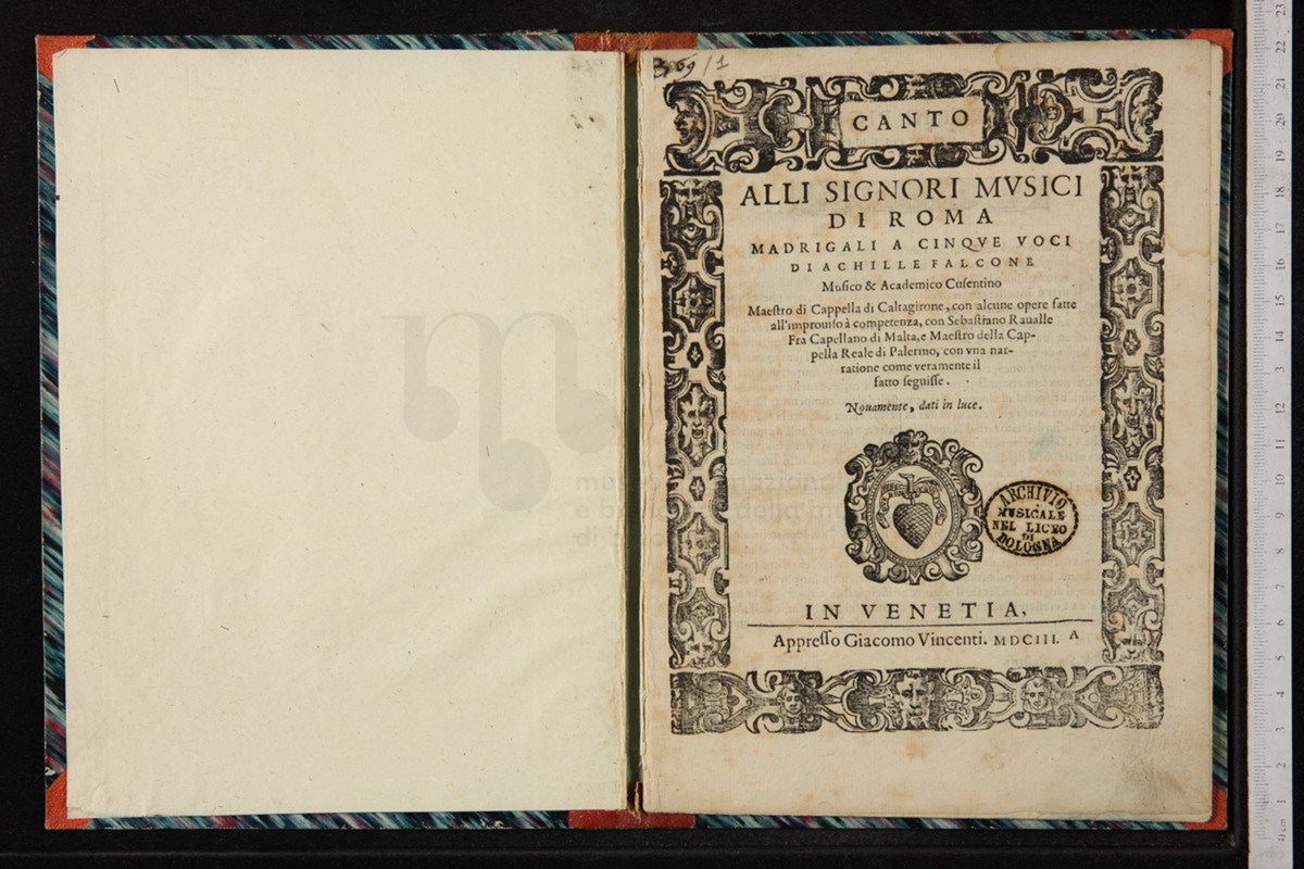 | Alternative. Title | Alli signori mvsici di Roma madrigali a cinqve voci di Achille Falcone Musico & Academico Cusentino, Maestro di Capella di Caltagirone, con alcune opere fatte all'improuiso à competenza, con Sebastiano Raualle Fra Capellano di Malta, e Maestro della Capella Reale di Palermo, con vna narratione come veramente il fatto seguisse. |