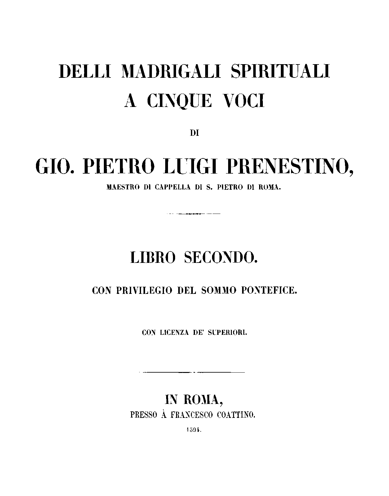 | Alternative. Title | Delli madrigalli spirituali a cinque voci |