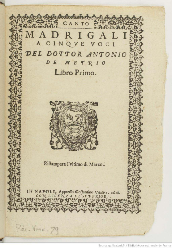 | Work Title | Madrigali a cinque voci... Libro primo ristampata l'ultimo di marzo |