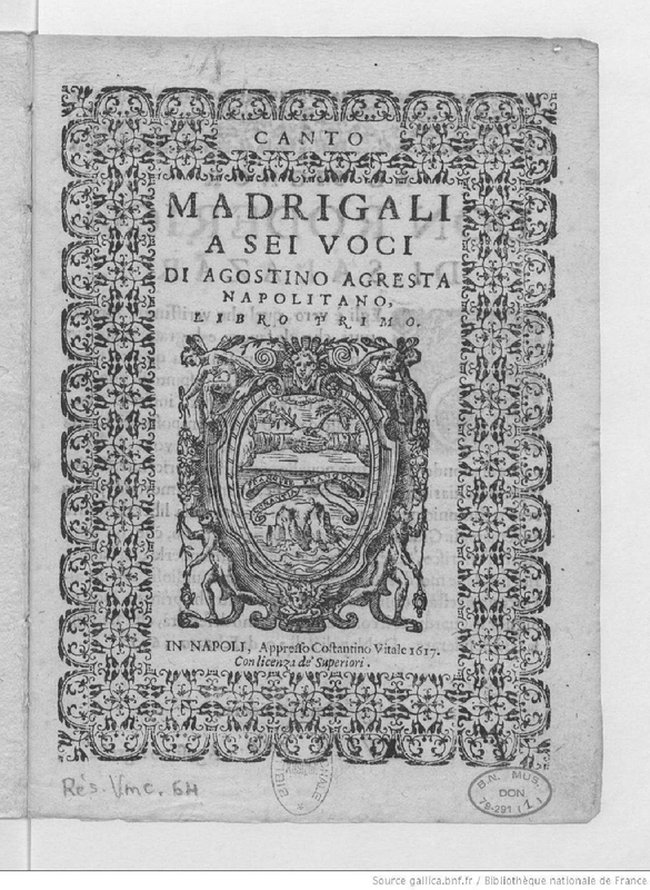 | Alternative. Title | Madrigali a sei voci di Agostino Agresta napolitano, Libro primo |