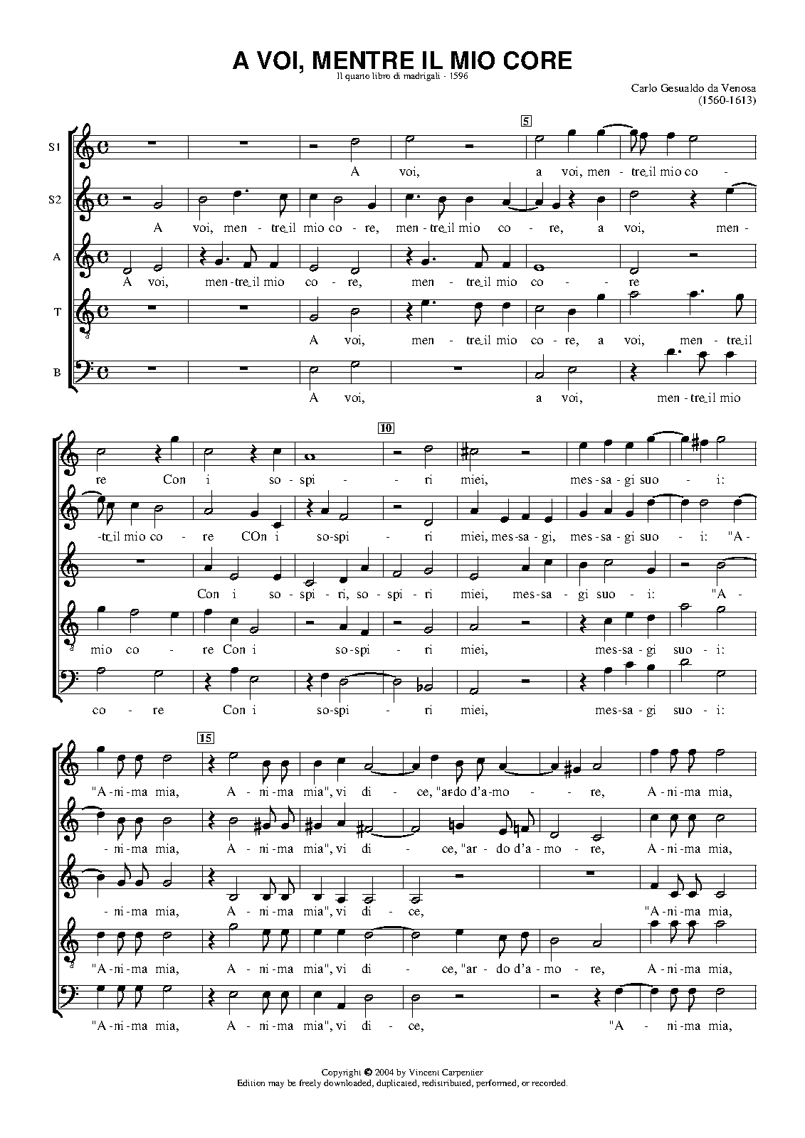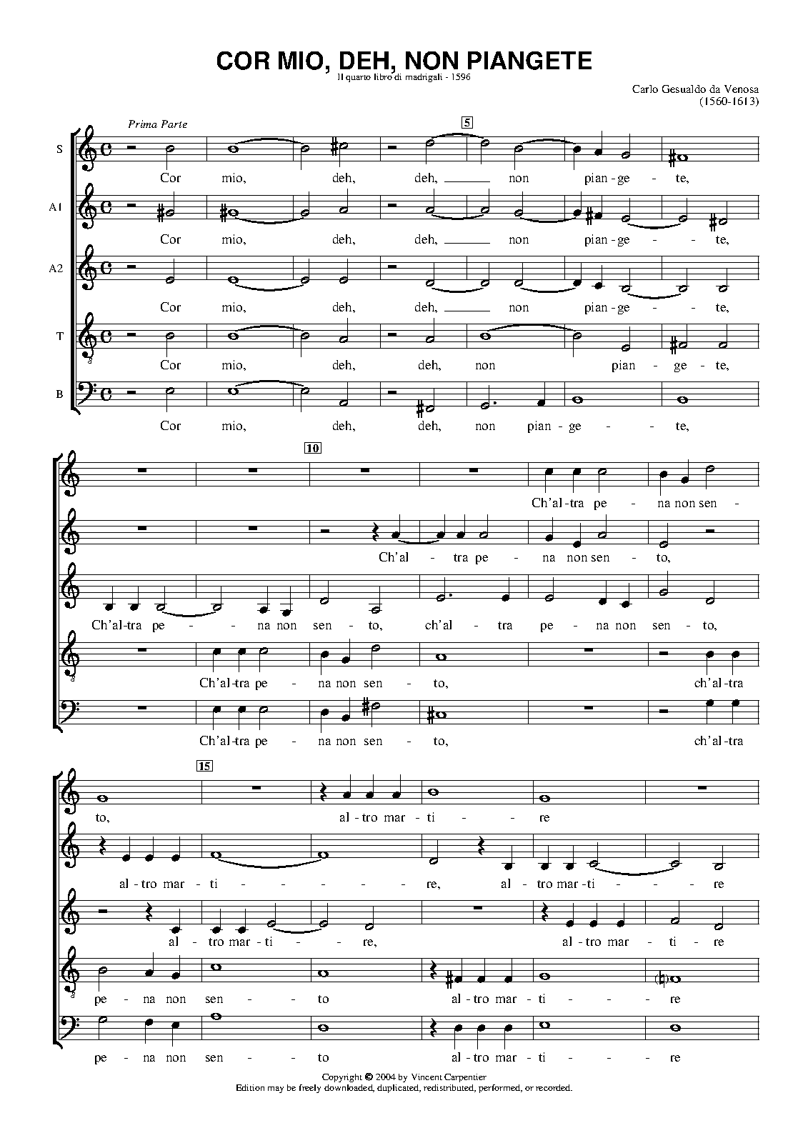 ⇒ 13 more: 2. Tall'or sano desio • 3. Io tacerò, ma nel silenzio mio • 4. Che fai meco, mio cor • 5. Questa crudele e pia • 6. Or, che in gioia • 7. Cor mio, deh, non piangete • 8. Sparge la morte al mio Signor nel viso • 9. Moro, e mentre sospiro • 10. Mentre gira costei • 11. A voi, mentre il mio core • 12. Ecco, morirò dunque • 13. Arde il mio cor • 14. Se chiudete nel core