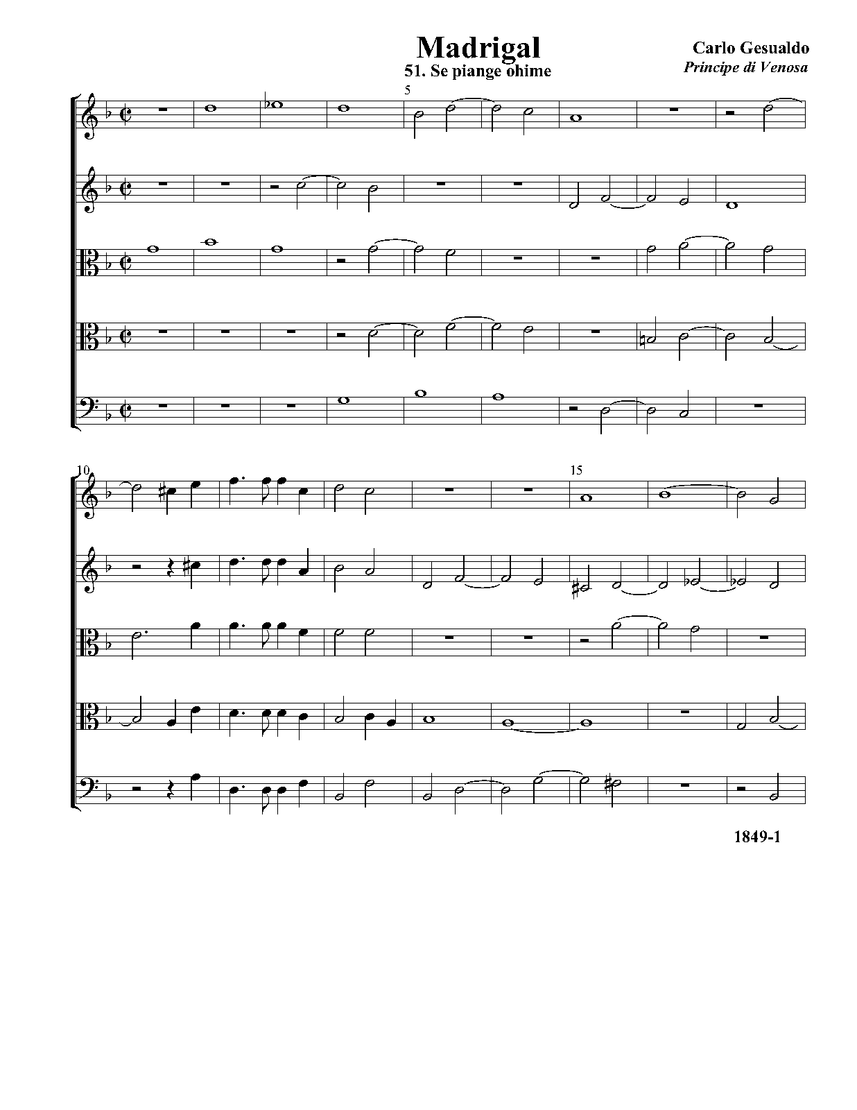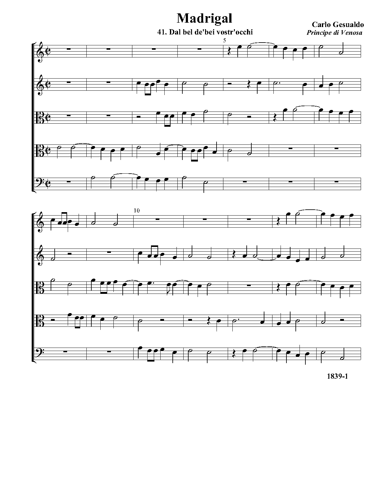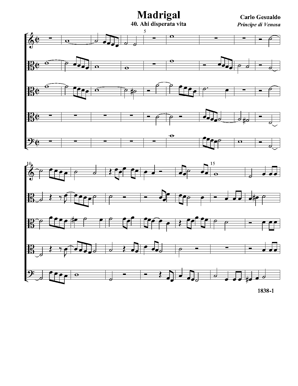 | Genre Categories | Madrigals; For 5 voices; For unaccompanied voices; Scores featuring the voice; For 6 voices; Italian language; For 5 viols (arr); Scores featuring the viol (arr); For 5 players (arr); For 6 viols (arr); For 6 players (arr) |