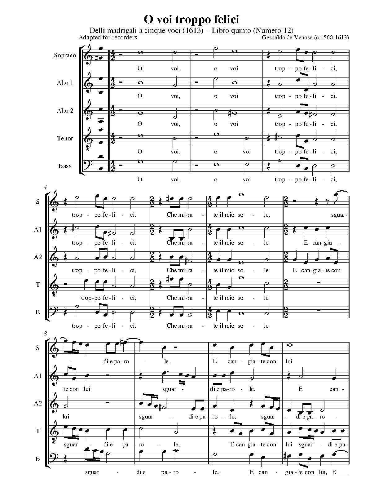 ⇒ 7 more: 5. O dolorosa gioia - Complete Score (alto notation) • Soprano recorder • Alto recorder • Tenor 1 recorder • Tenor 2 recorder • Bass recorder • Engraving File (Sibelius)