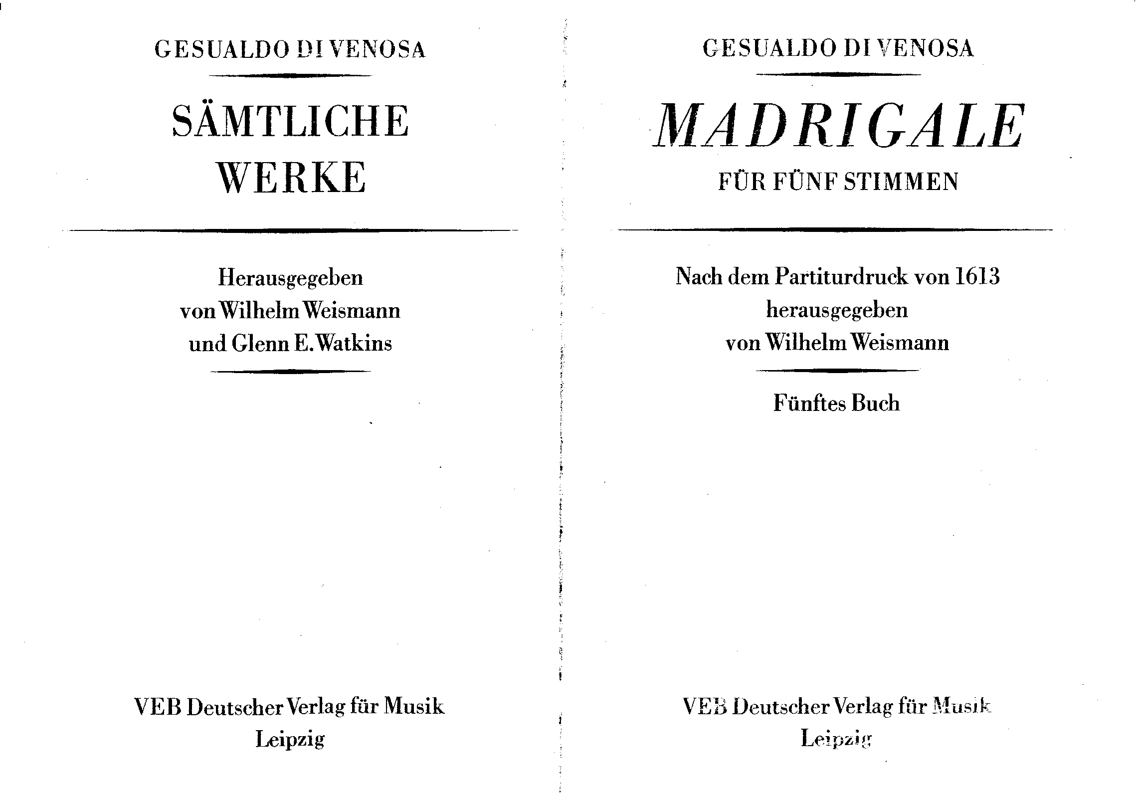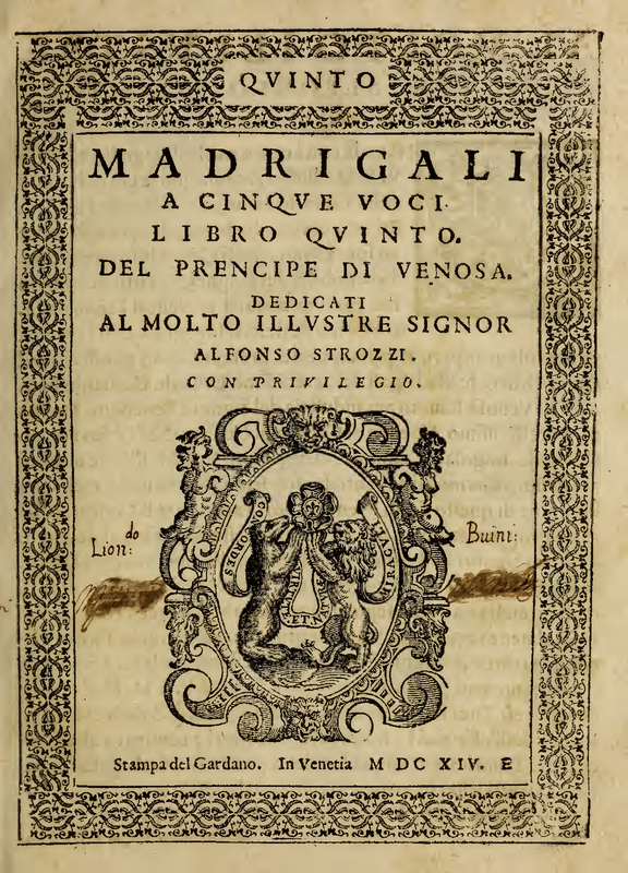 | Name Translations | Cinquième livre de madrigaux; Madrigali del principe di Venosa, a cinque voci, libro quinto |