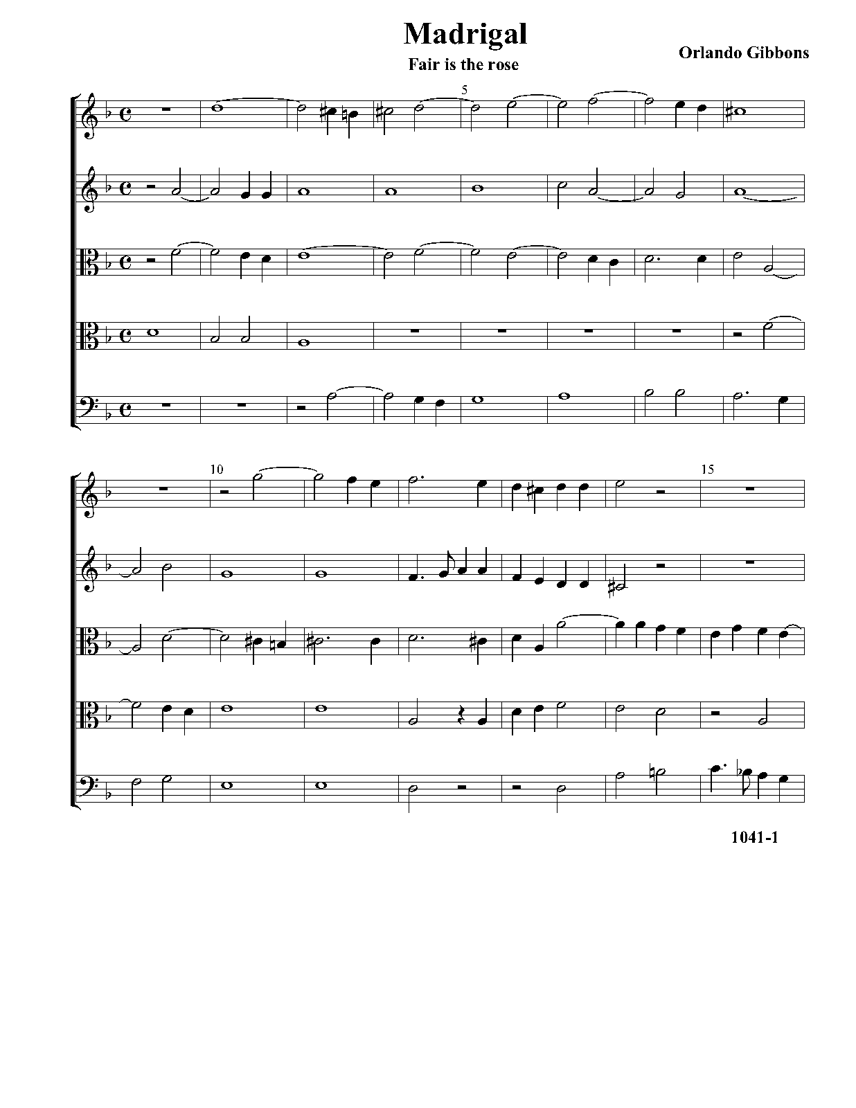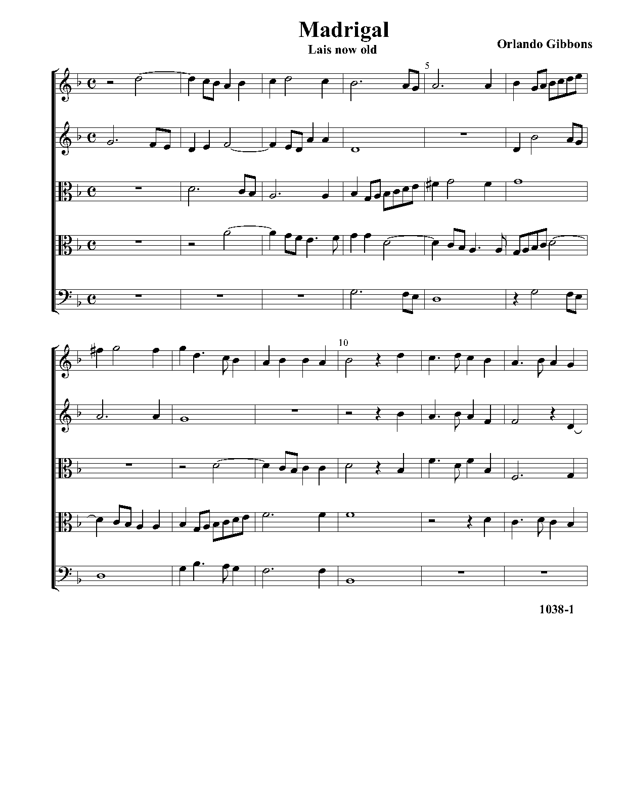 | Genre Categories | Madrigals; Motets; For 5 voices; For unaccompanied voices; Scores featuring the voice; For 5 instruments; Scores with open instrumentation; For 5 players; English language; For 5 viols (arr); Scores featuring the viol (arr); For 5 players (arr); For piano (arr); For 1 player (arr); Scores featuring the piano (arr) |