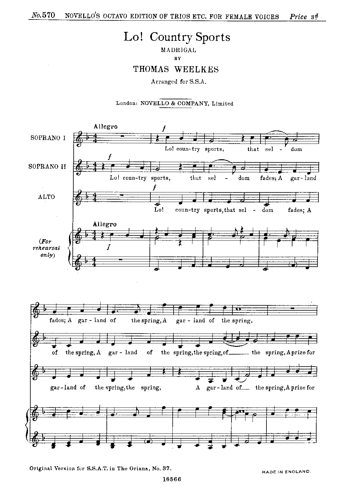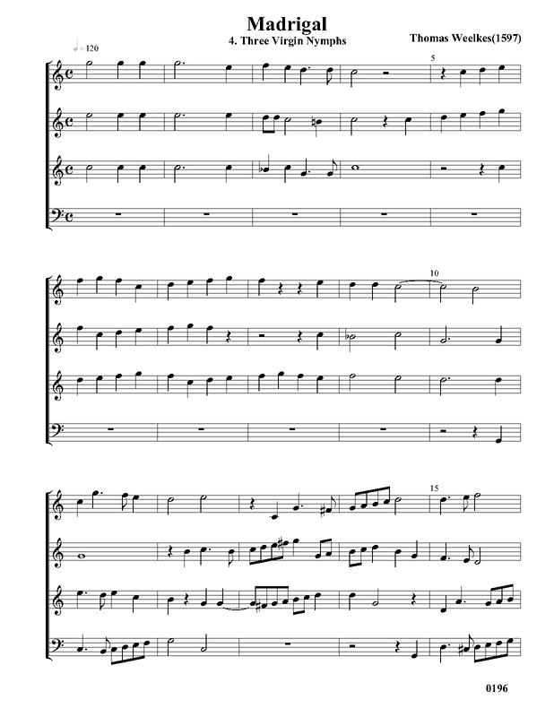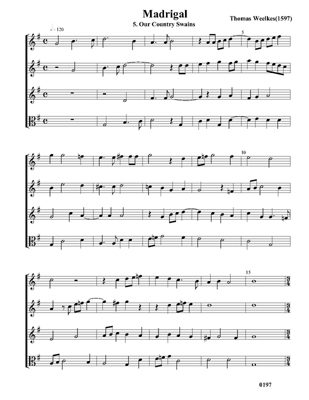 | Genre Categories | Madrigals; For 3 voices; For unaccompanied voices; Scores featuring the voice; For 4 voices; For 5 voices; For 6 voices; English language; For 3 viols (arr); Scores featuring the viol (arr); For 3 players (arr); For 4 viols (arr); For 4 players (arr); For 3 voices (arr); For unaccompanied voices (arr); Scores featuring the voice (arr); For 5 viols (arr); For 5 players (arr); For horn, trumpet, euphonium (arr); Scores featuring the horn (arr); Scores featuring the trumpet (arr); Scores featuring the euphonium (arr) |