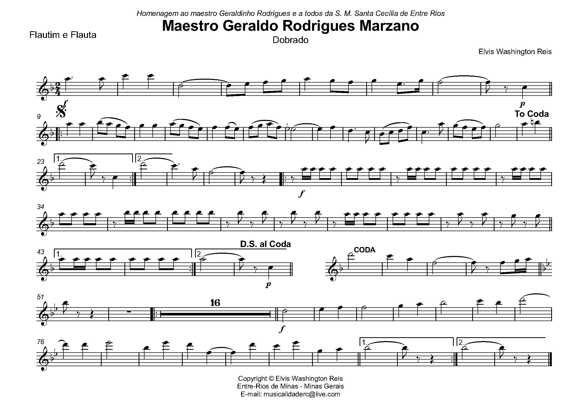 | Dedication | Homenagem ao maestro Geraldinho Rodrigues e a todos da S. M. Santa Cecília de Entre Rios |