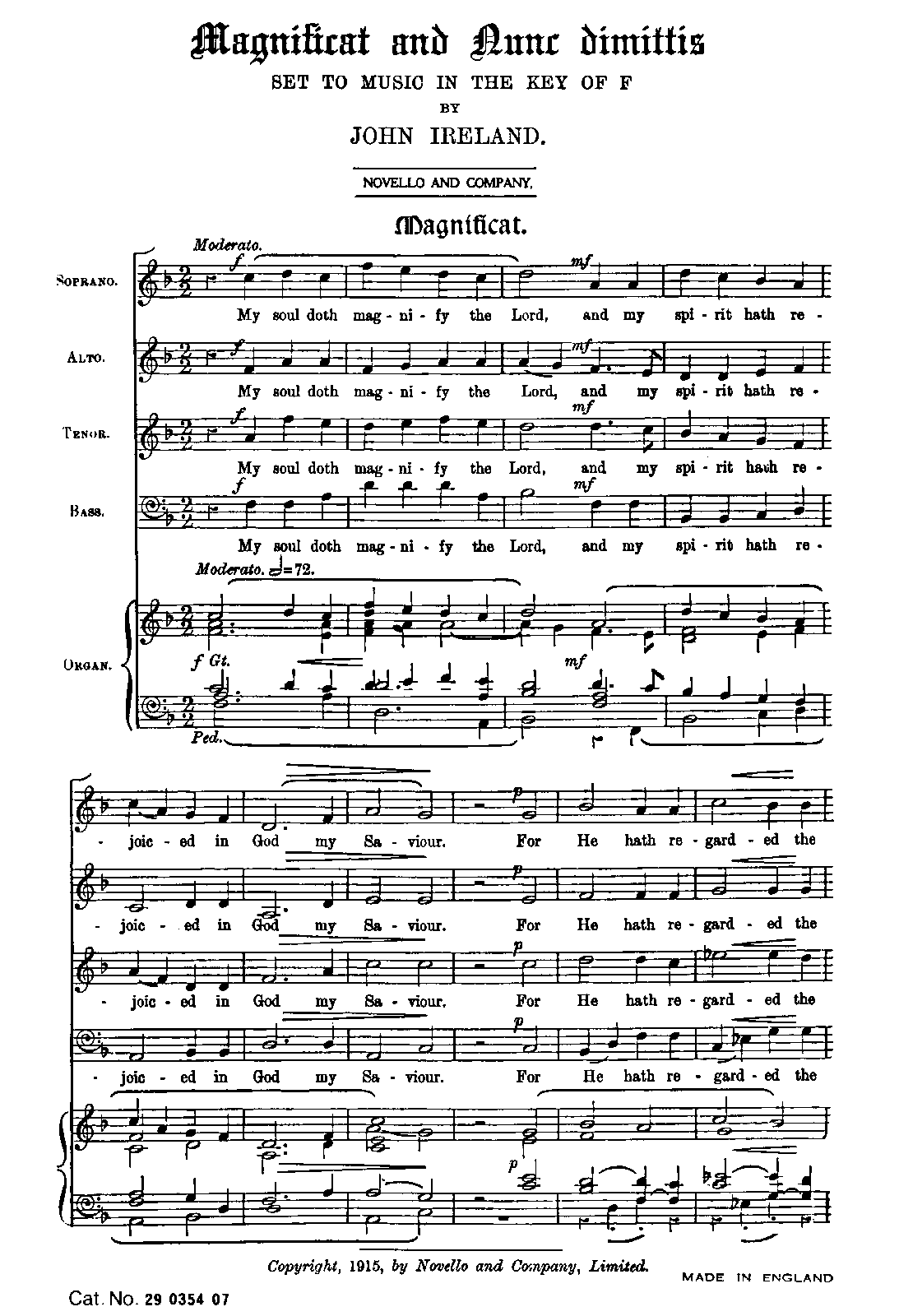 | Work Title | Magnificat and Nunc Dimittis in F major |