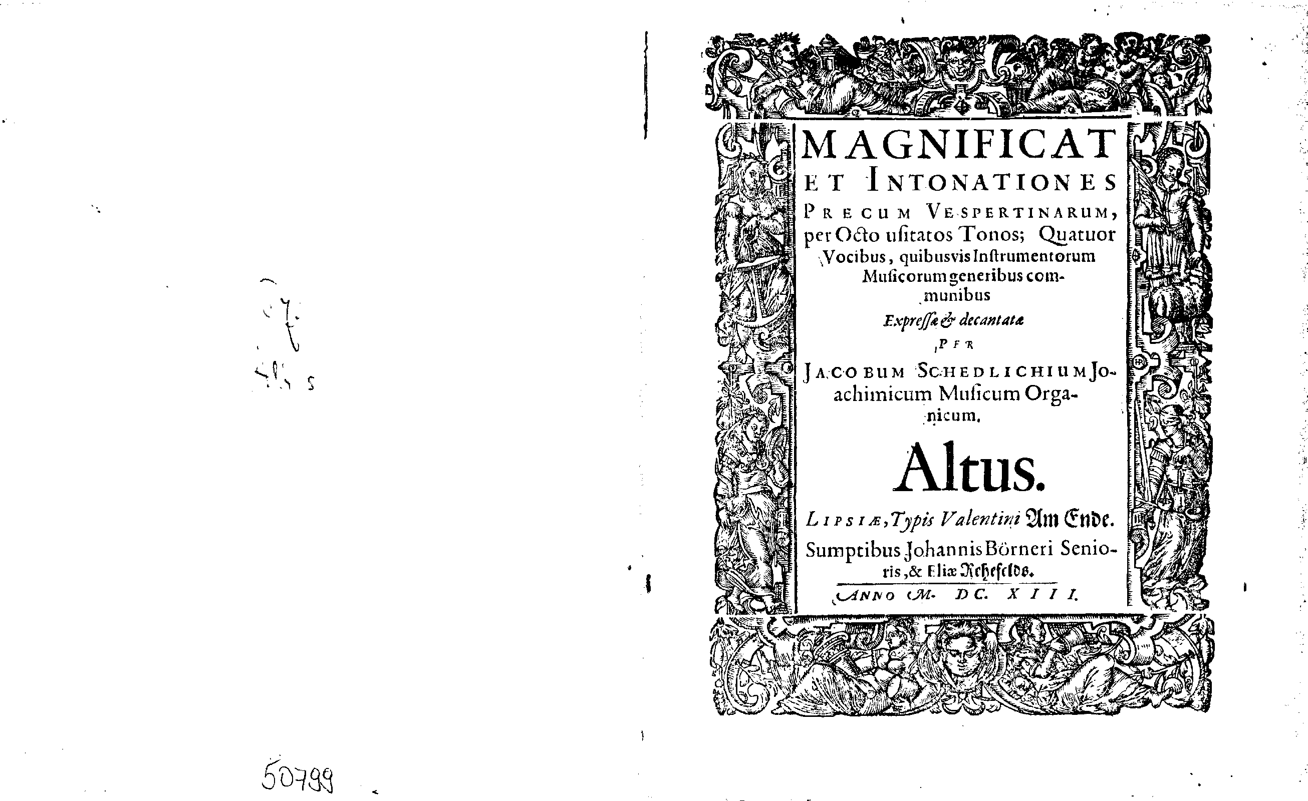 | Work Title | Magnificat et intonationes precum vespertinarum, per octo usitatos tonos, quatuor vocibus, quibusius instrumentorium musicorum generibus communibus expressae et decantatae |