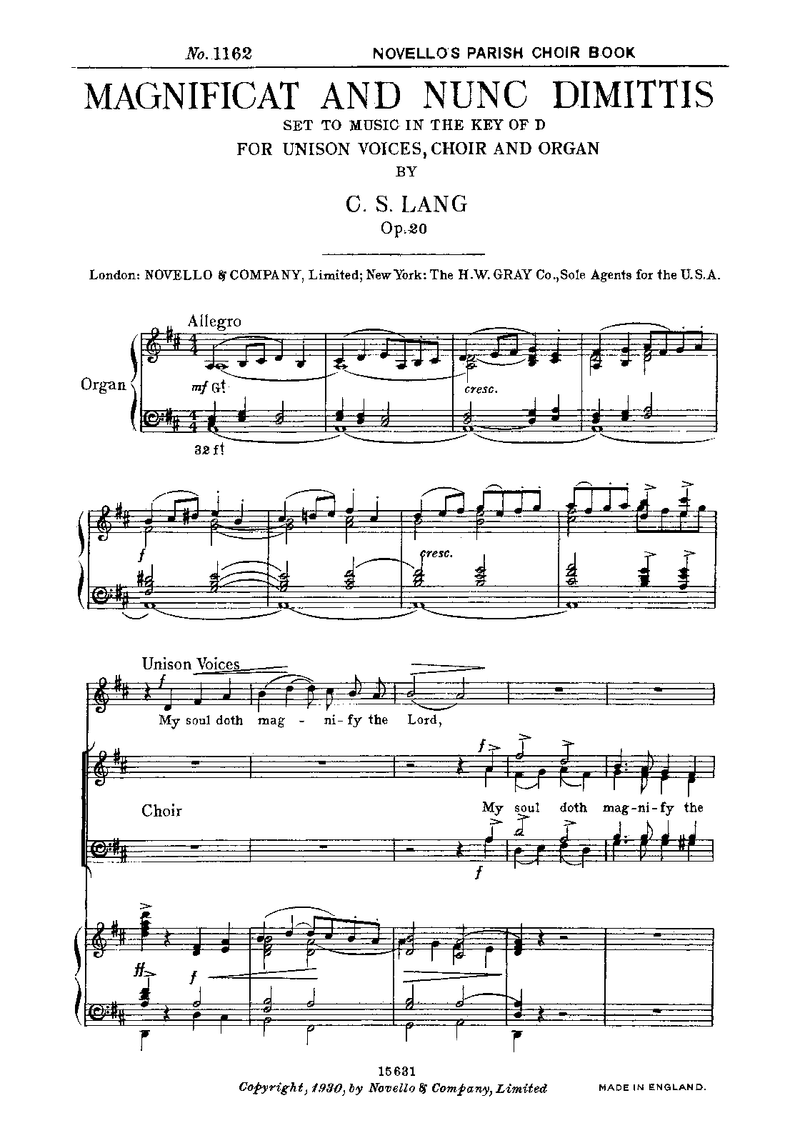 Magnificat and Nunc Dimittis, Op.20 (Lang, Craig Sellar)