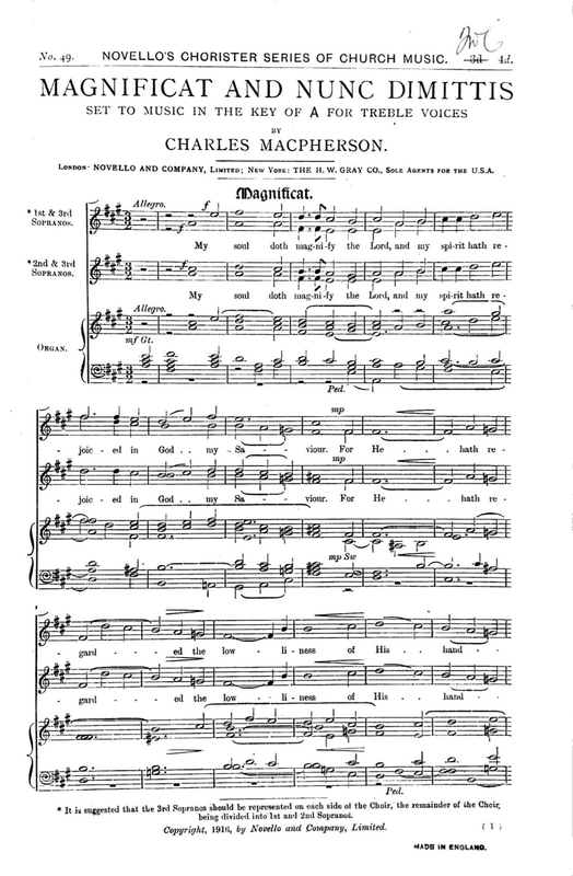 "It is suggested that the 3rd Sopranos should be represented on each side of the Choir, the remainder of the Choir being divided into 1st and 2nd Sopranos".