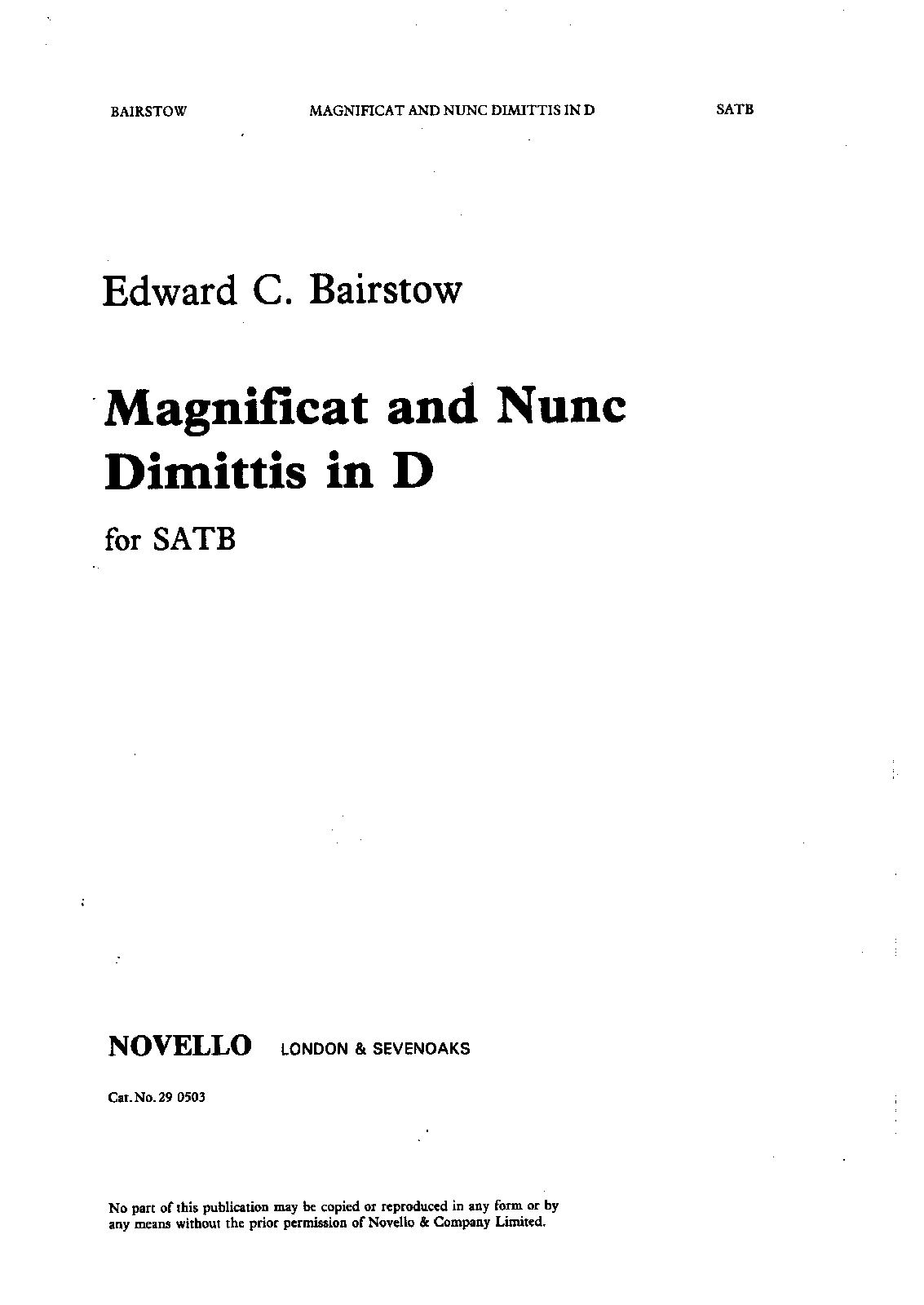 | Work Title | Magnificat and Nunc dimittis in D major |