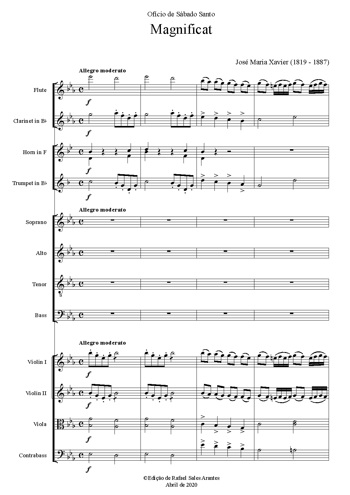 | Instrumentation | Voices: mixed chorus (SATB) Orchestra: flute, clarinet (B♭), 2 horns (F), trumpet (B♭), strings |