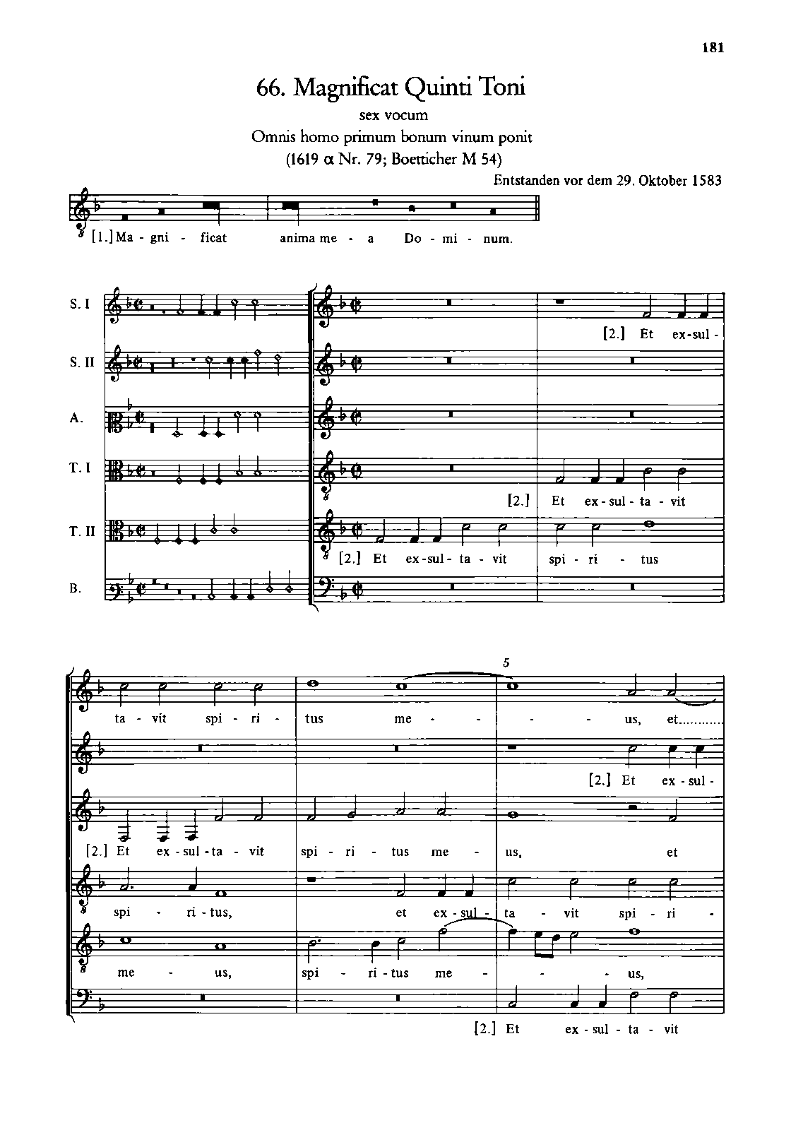 Alternative. Title Magnificat super Omnis homo primum bonum vinum ponit