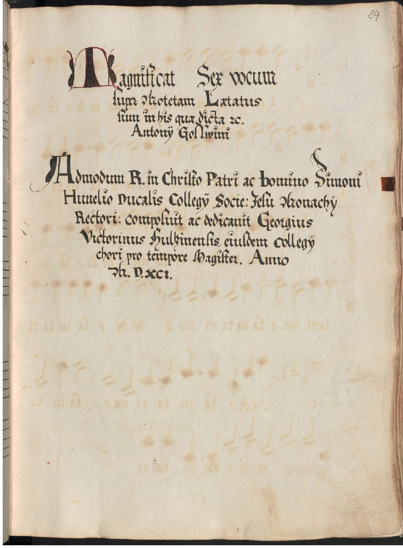 | Alternative. Title | Magnificat sex vocum super motetam Laetatus sum in his quae dicta |