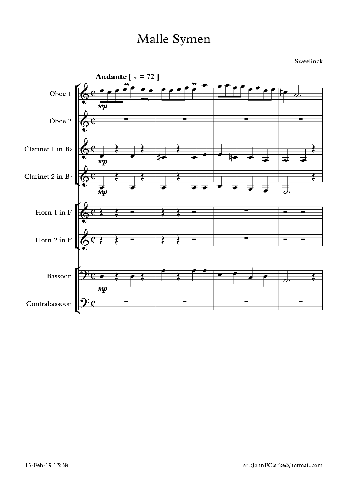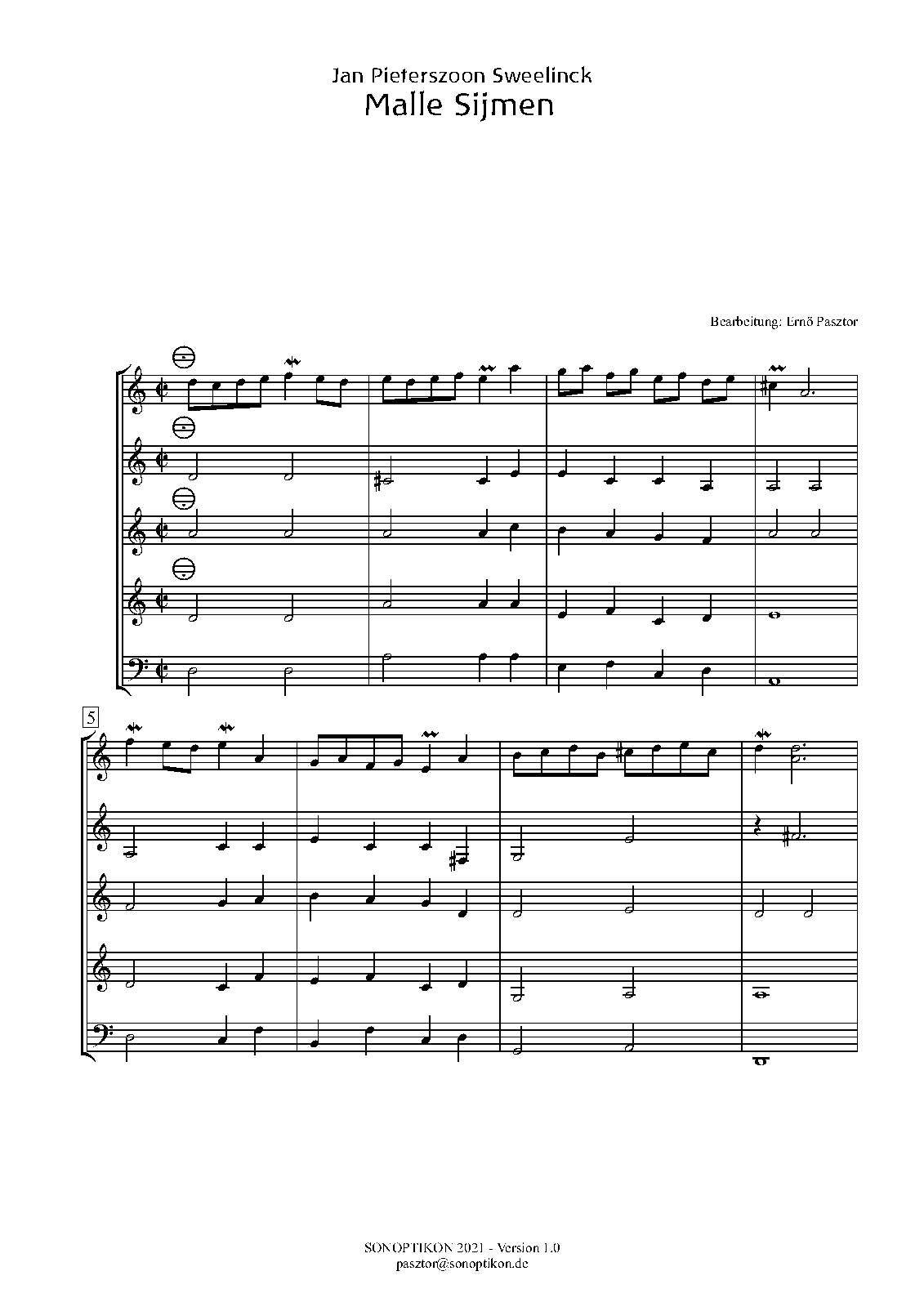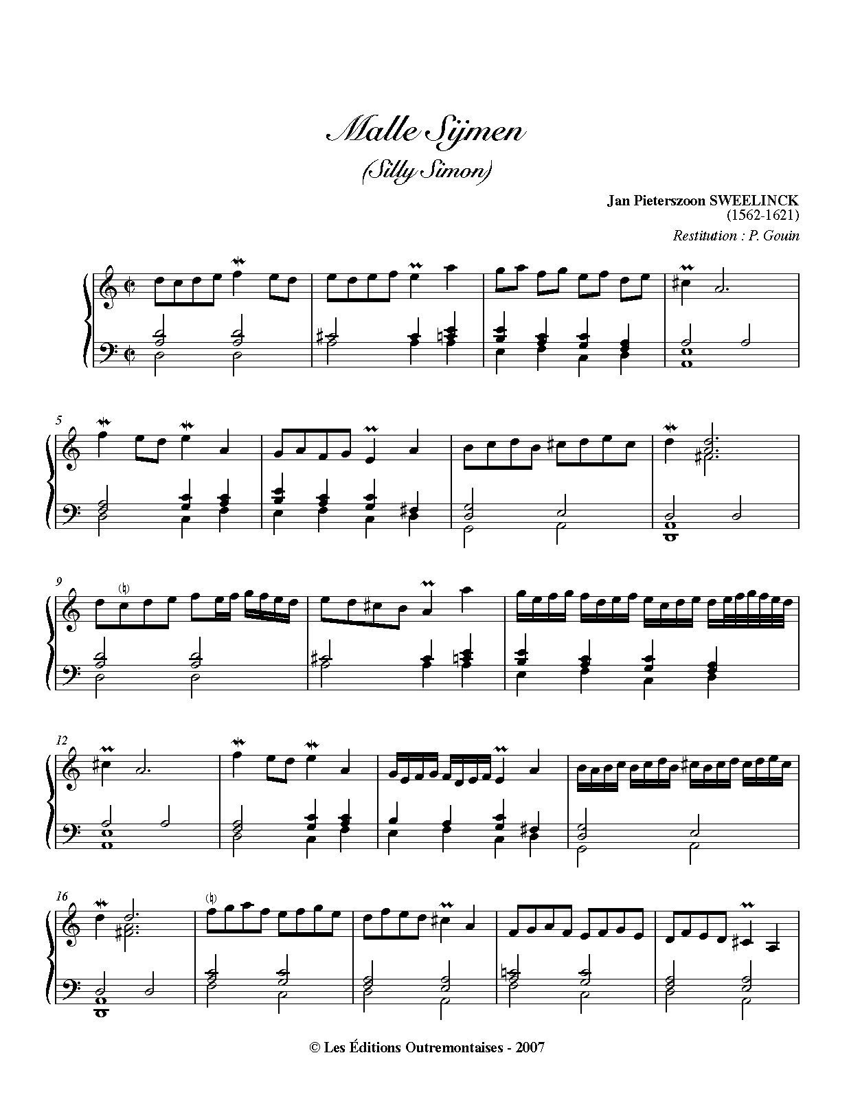 Authorship Note Grove Music classifies this work as "doubtful", i.e. probably not by Sweelinck. |