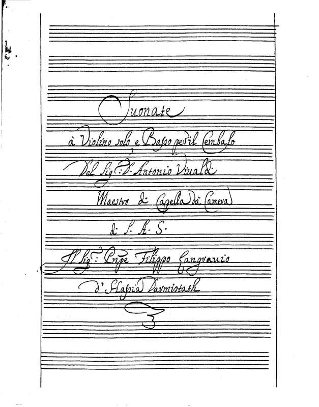| Alternative. Title | Suonate à Violino solo, e Basso per il Cembalo. Del Sig: D. Antonio Viualdi |