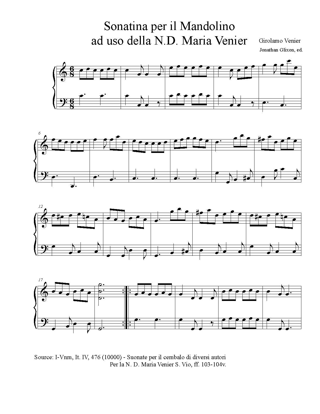 Sonatina per il Mandolino ad uso della N. D. Maria Venier