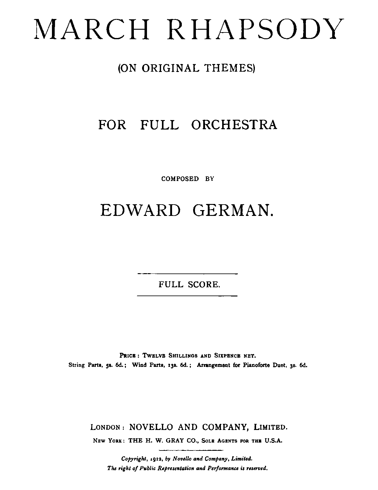 | Genre Categories | Marches; Rhapsodies; For orchestra; Scores featuring the orchestra |