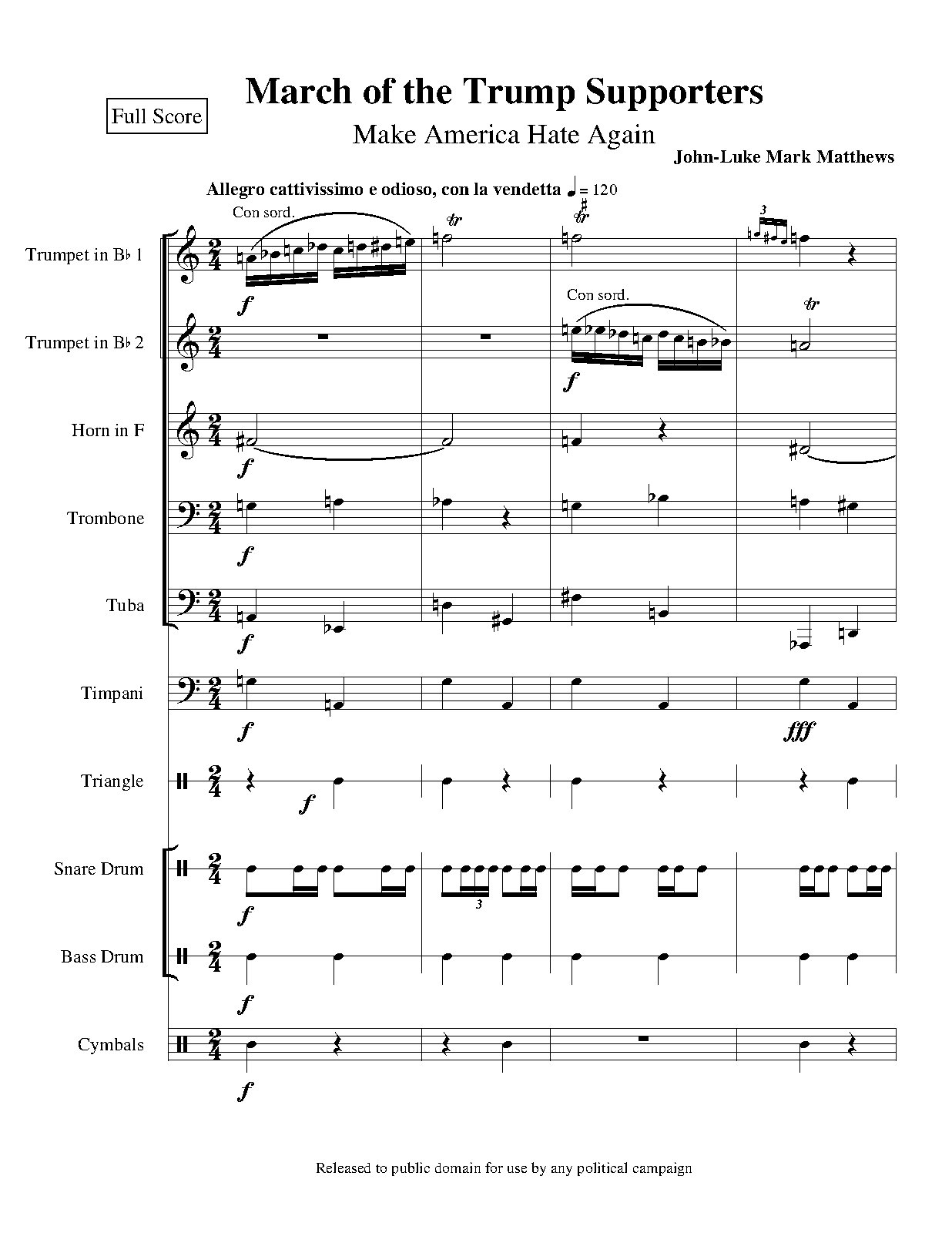 | Alternative. Title | Trumpsters' March, ossia March of the Deplorables |
