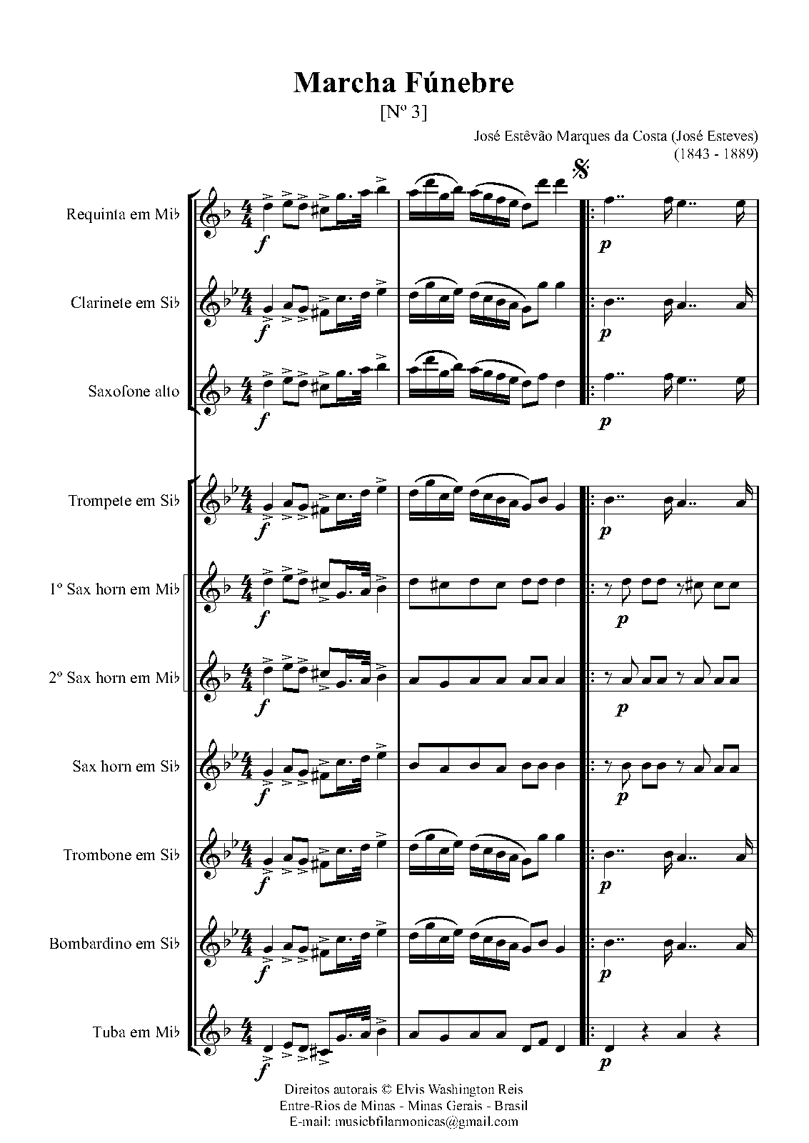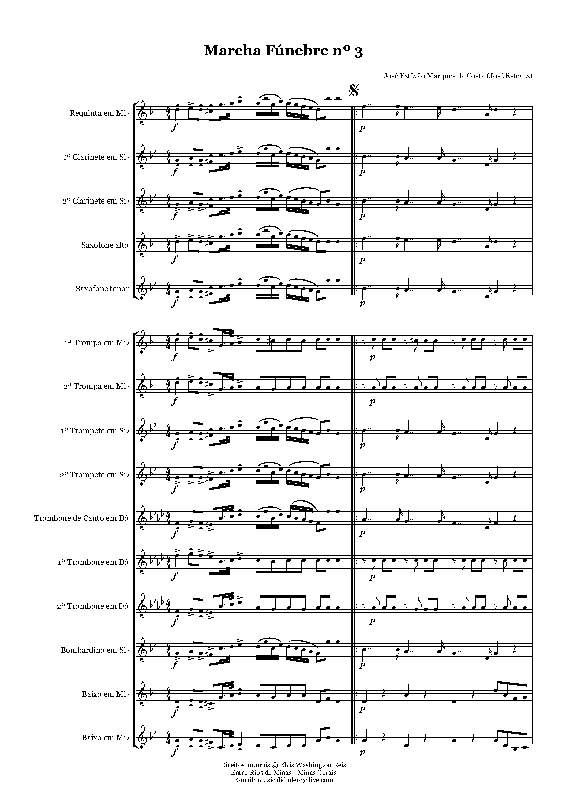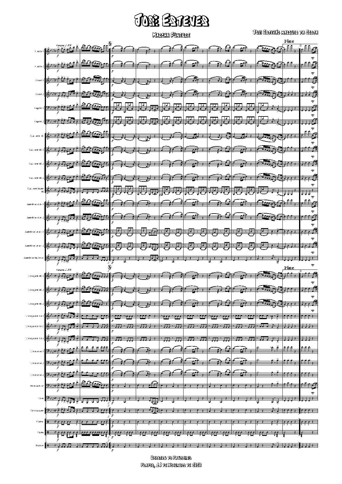 ⇒ 15 more: Clarinet (E♭) • Clarinet 1 (B♭) • Clarinet 2 (B♭) • Alto Saxophone (E♭) • Tenor Saxophone (B♭) • Horn 1 (E♭) • Horn 2 (E♭) • Trumpet 1 (B♭) • Trumpet 2 (B♭) • Trombone de Canto (treble clef) • Trombone 1 (treble clef) • Trombone 2 (treble clef) • Euphonium (B♭, treble clef) • Tuba (E♭, treble clef) • Tuba (B♭, treble clef)