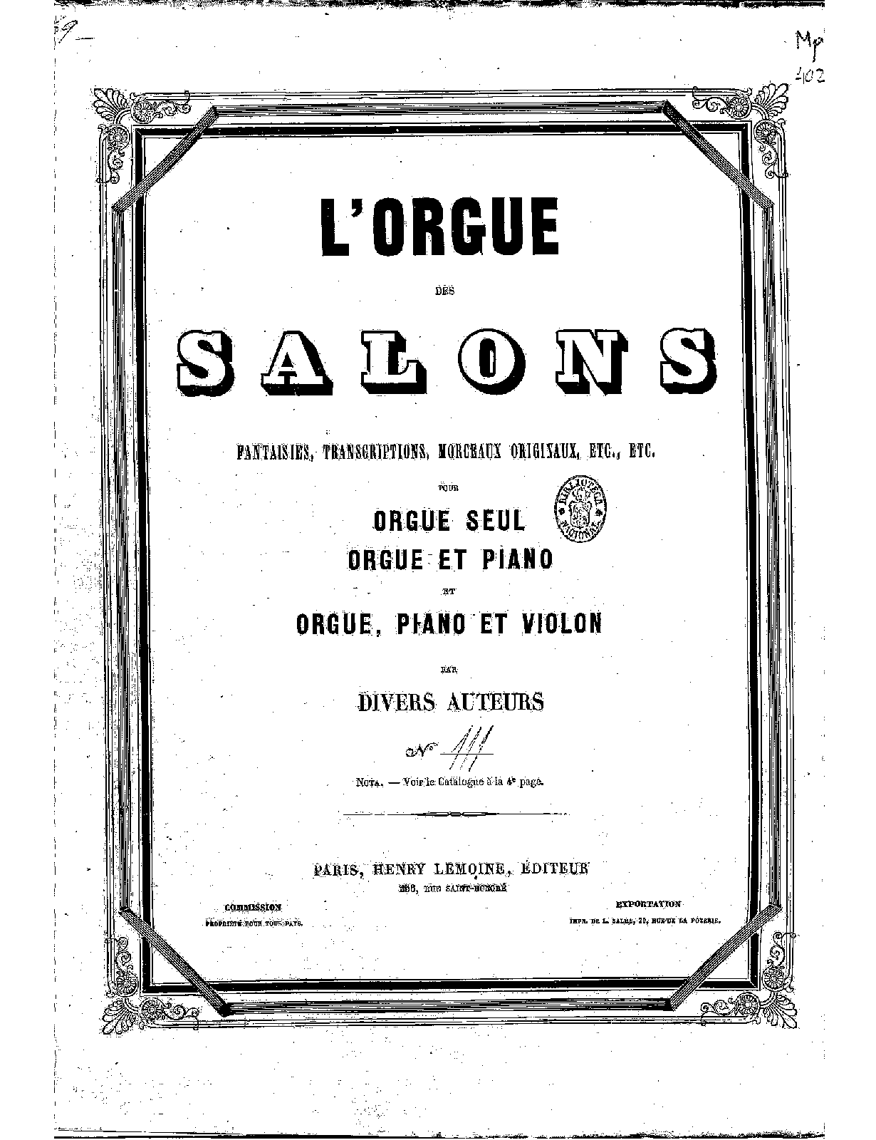 l’Orgue des Salons. Fantaisies, Transcriptions... Paris: Henry Lemoine, n.d. (ca.1868). Plate 6550 HL.