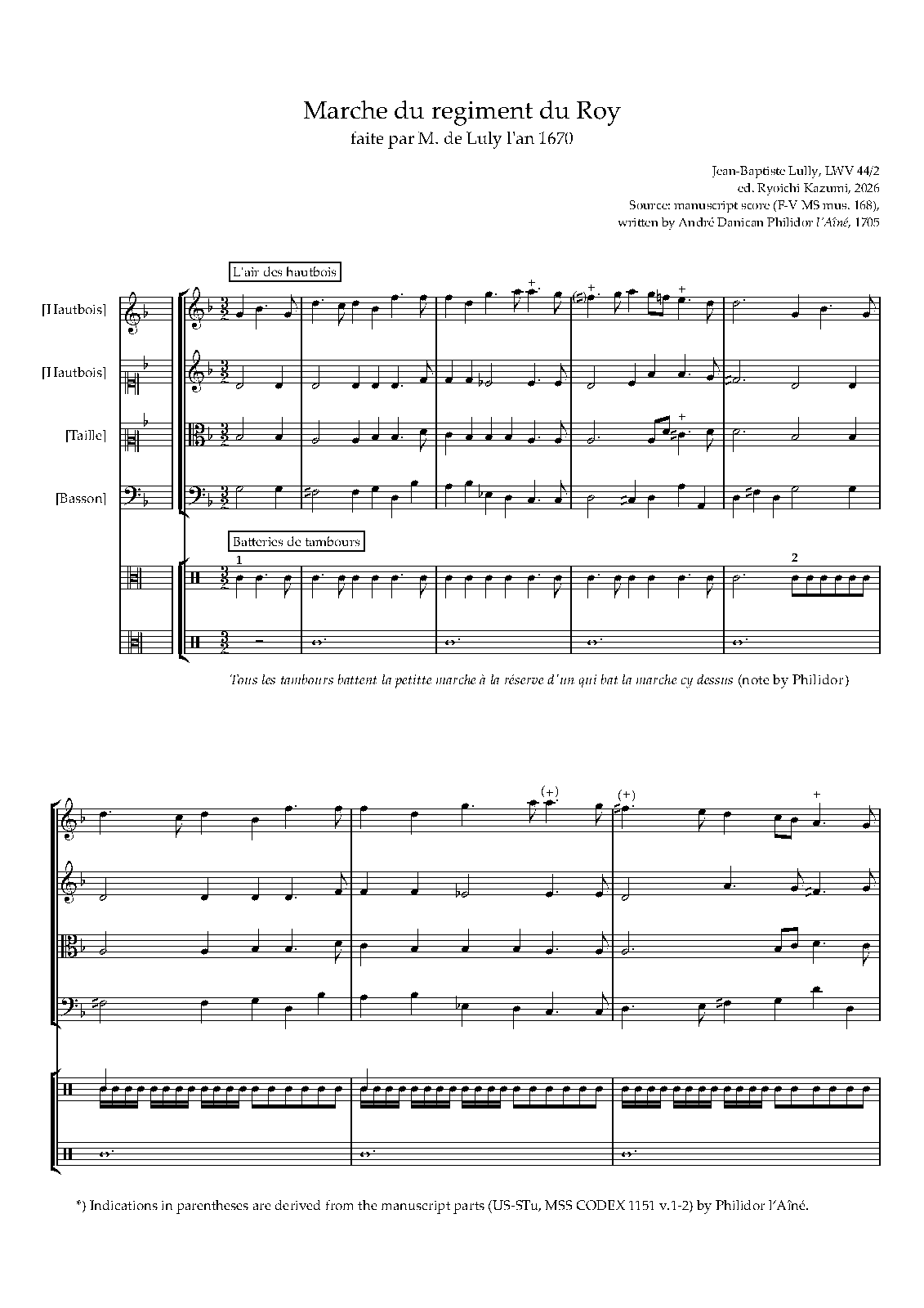 | Instrumentation | 4 instruments ("hautbois"), 2 drums |