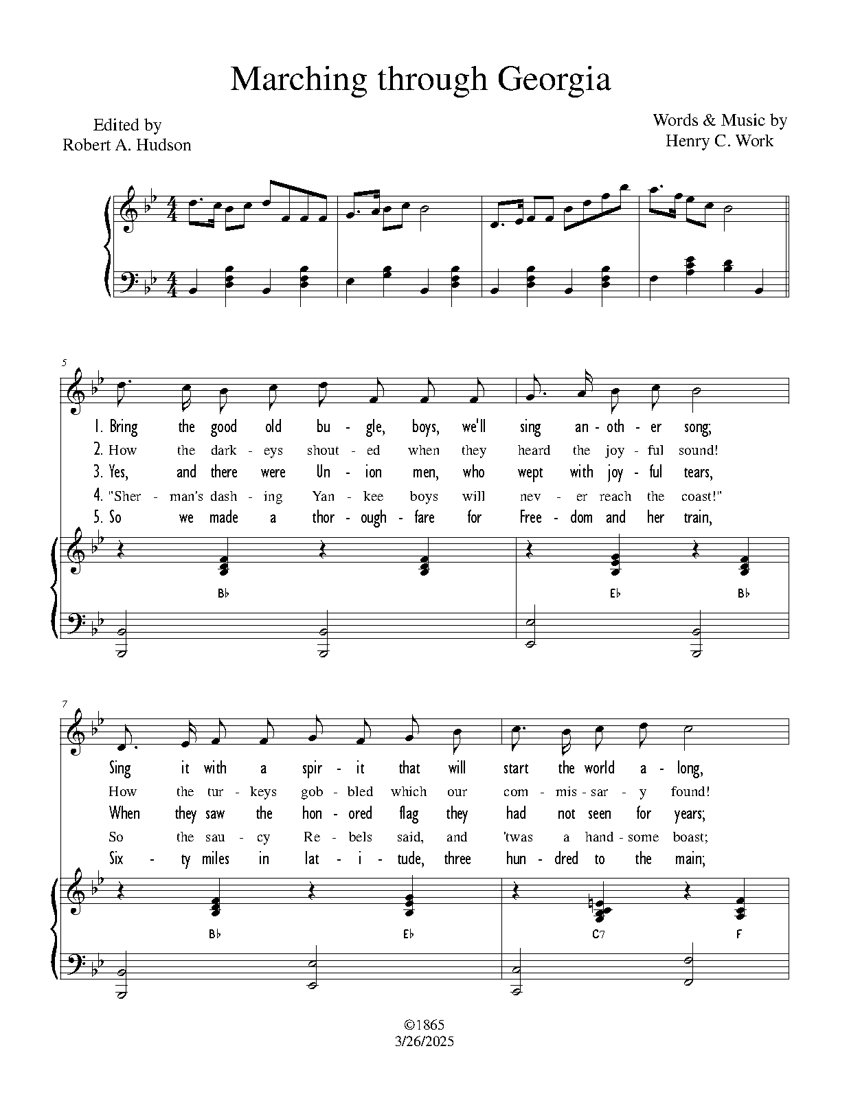 | Dedication | Mary Lizzle Work (New Washington, Indiana), composer's cousin William Tecumseh Sherman (1820–1891) |