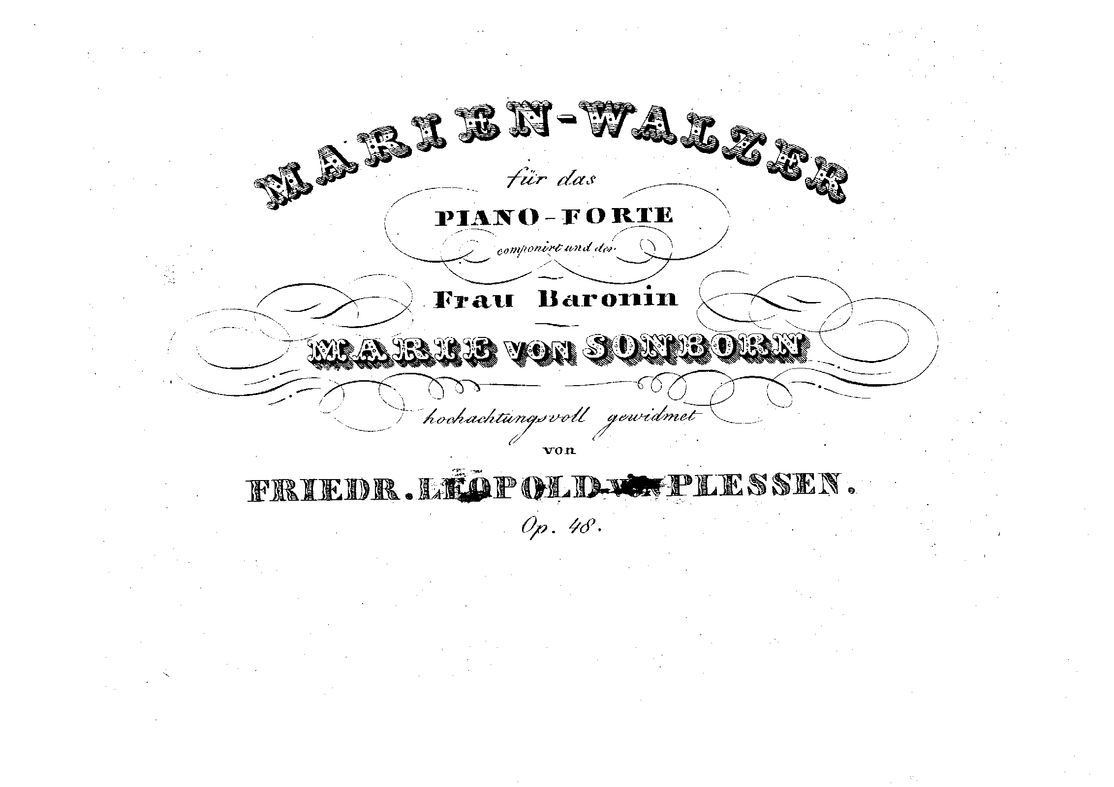 | Dedication | der Frau Baronin Marie von Sonborn hochachtungsvoll gewidmet |