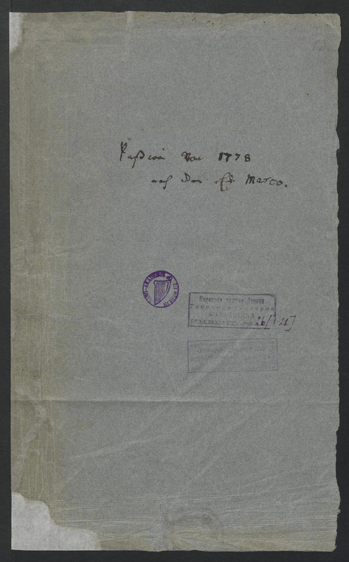 | Alternative. Title | St. Mark Passion; Passio secundum Marcum; TU: Paßsion von 1778 nach dem Ev. Marco.; Paßion von 1778 nach dem Hl. Marco. |