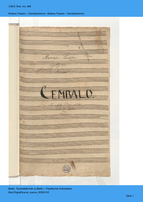 Alternative. Title Marcus Passion angeblich von R. Keiser NB enthält 6 Arien aus der Brockschen Paßion von Händel