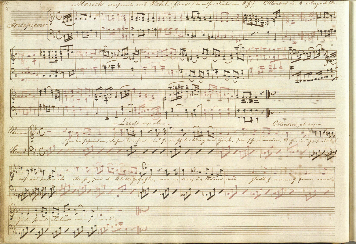 Composed together with Friedrich Wilhelm Grund, German composer (1791-1874). The manuscript bars written in red are by Grund.