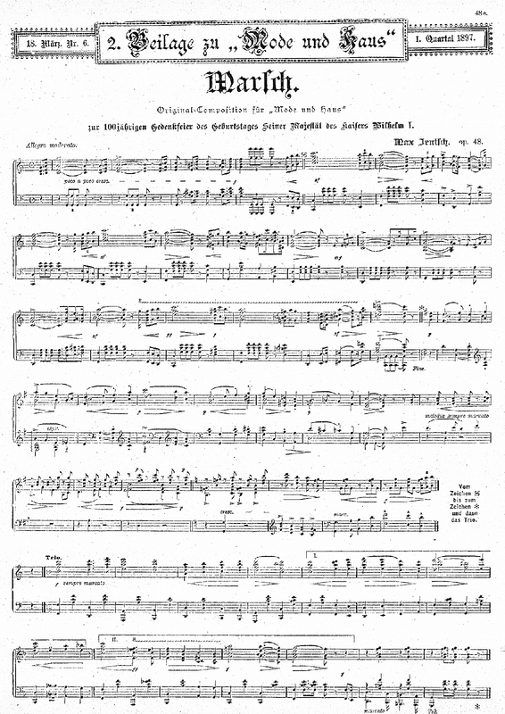 Noted as an original publication for Mode und Haus "zur 100 jährigen Gedenkfeier des Geburtstages Seiner Majestät des kaisers Wilhelm I." / "To commemorate the 100th anniversary of the birthday of His Majesty Kaiser Wilhelm I."
