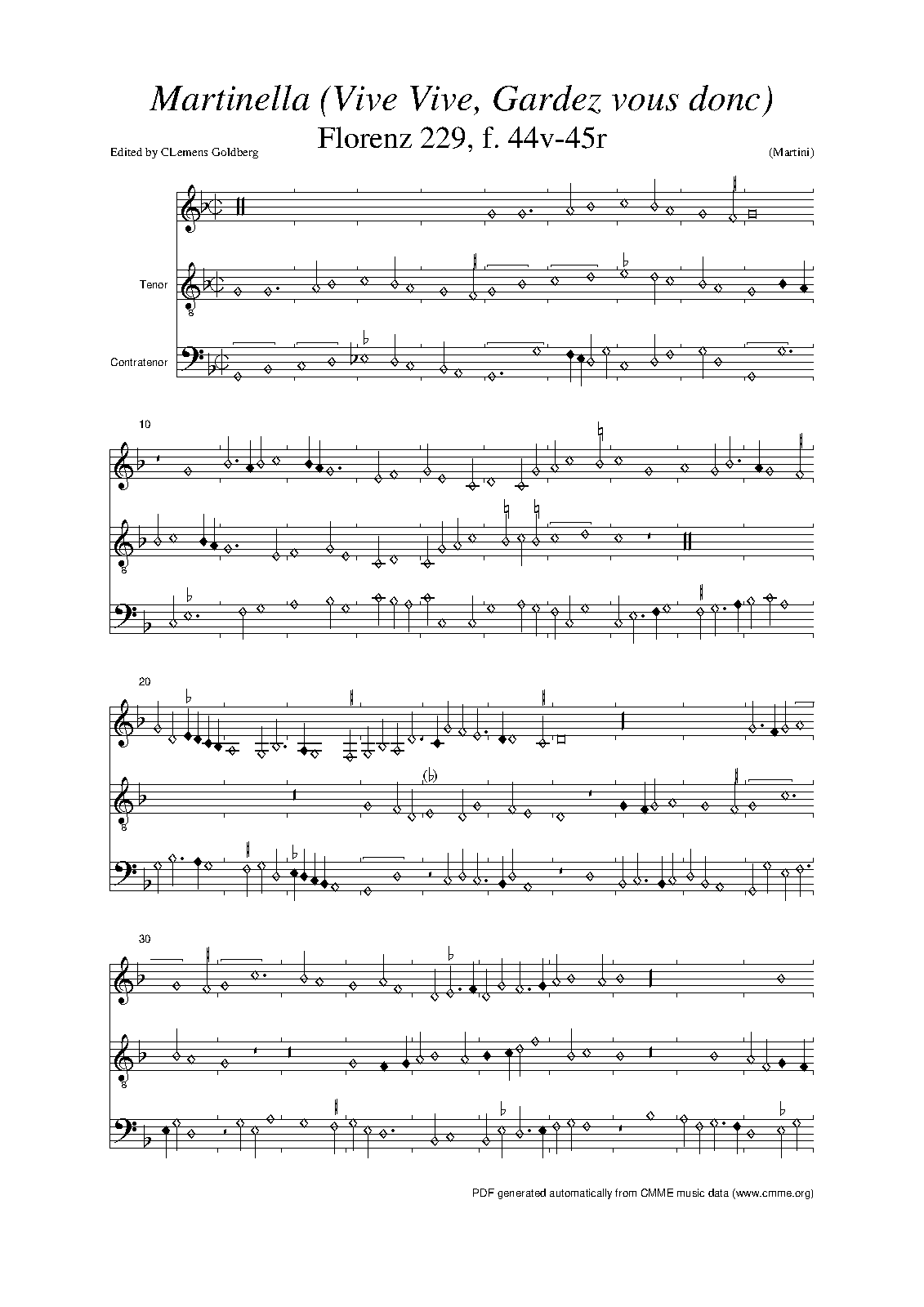| Alternative. Title | Vive vive, gardez vous donc / In pace in idipsum / Que vous madame / La Martinella (variant) |