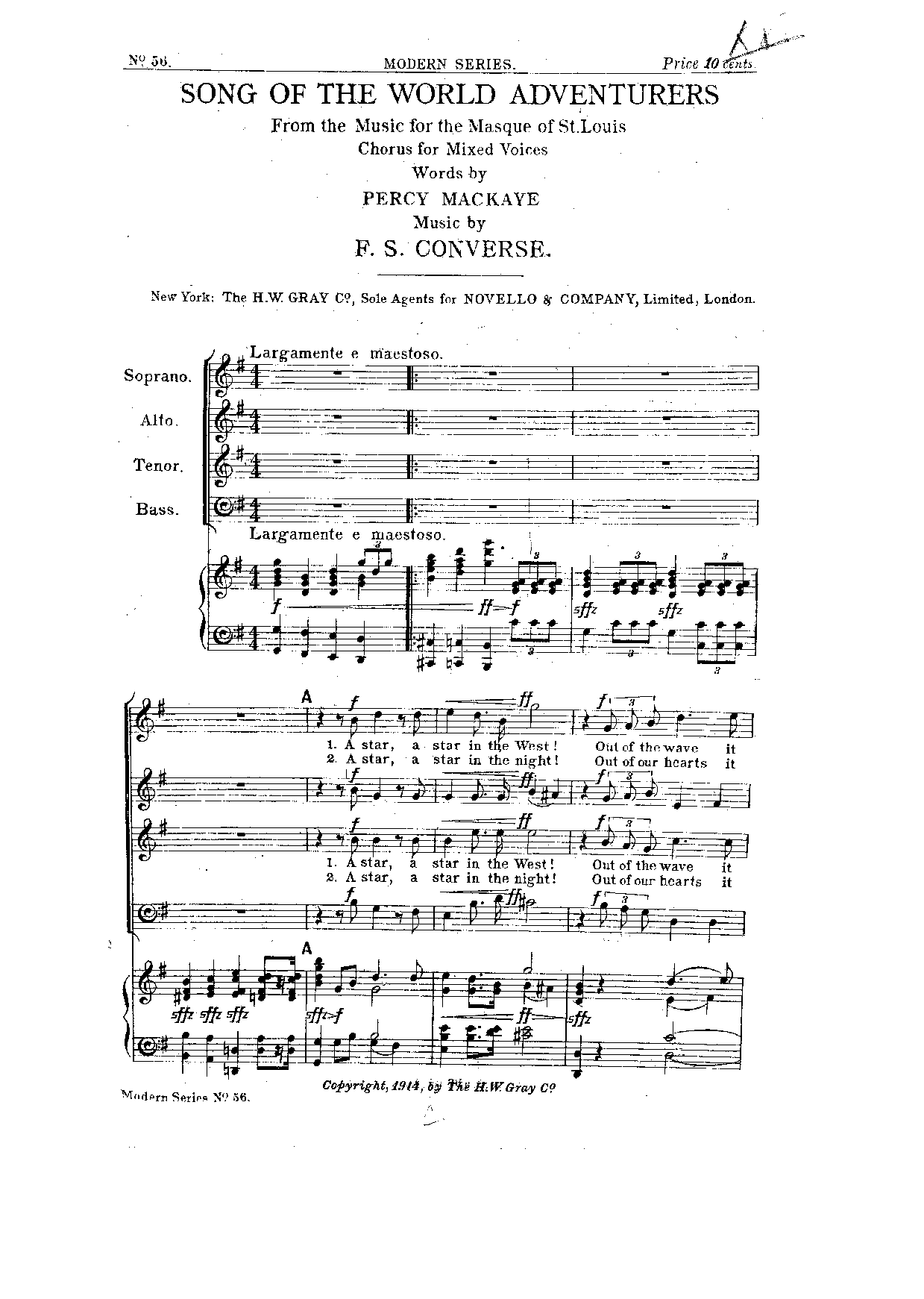 New York: H. W. Gray, 1918. Plate M.S.129.
