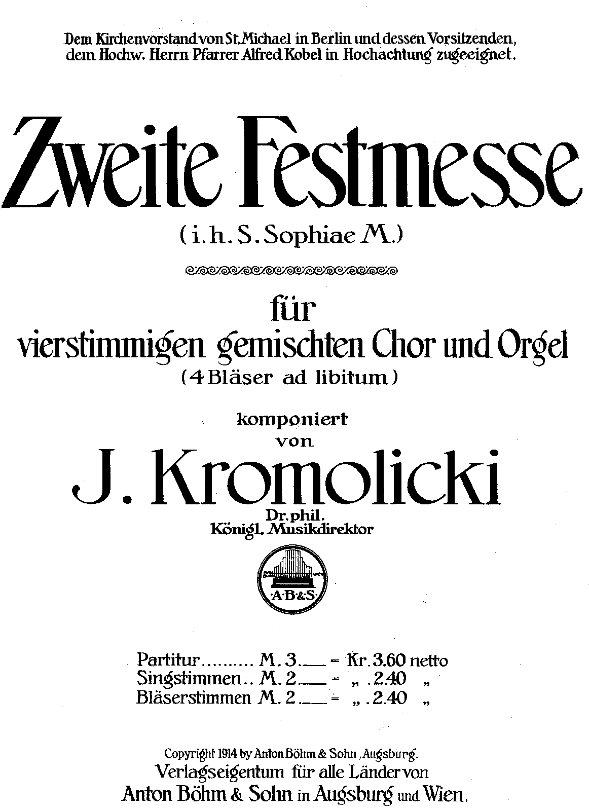 | Alternative. Title | Zweite Festmesse (i. h. S. Sophiae M.) |